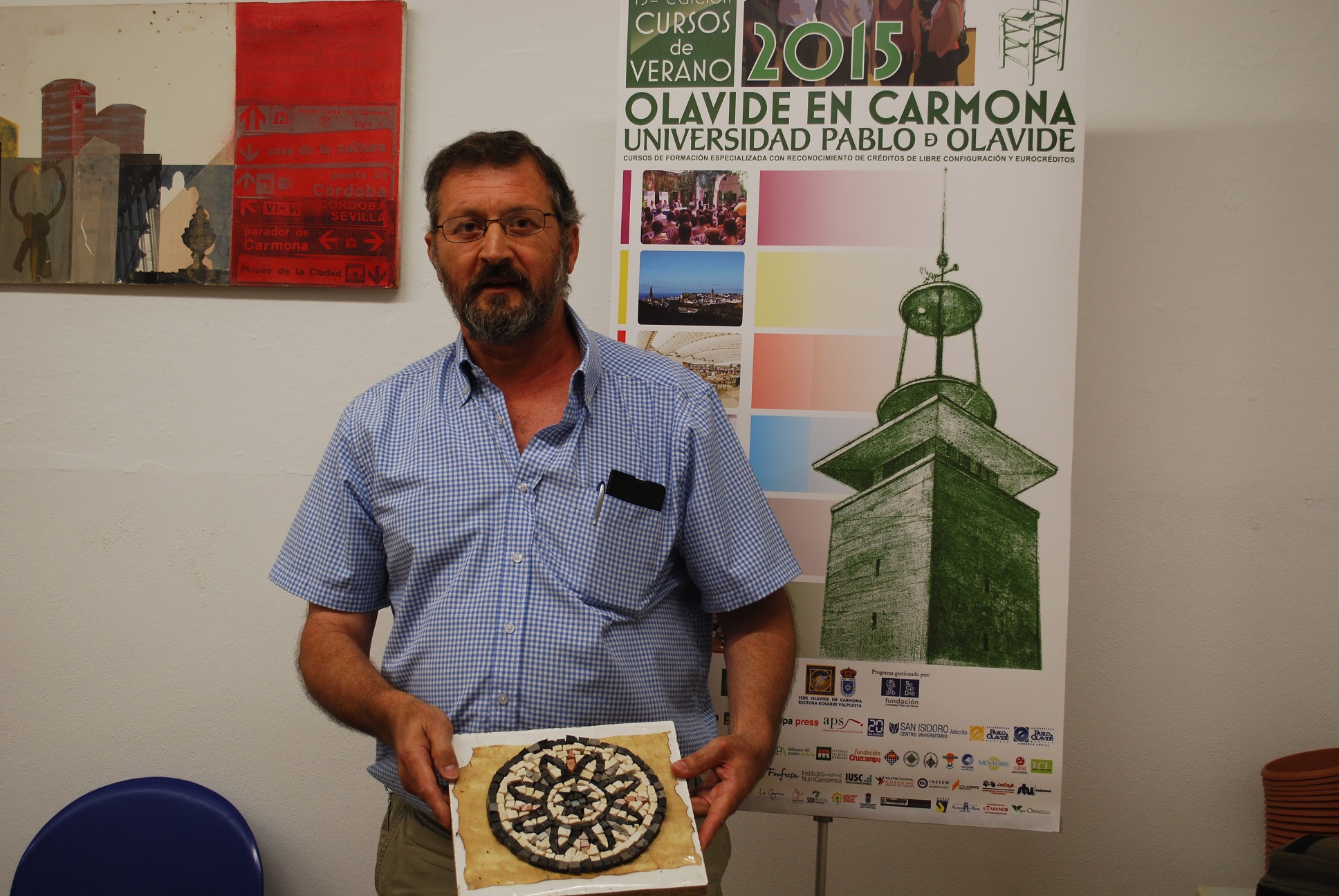Santiago Recio ha realizado estas declaraciones con motivo de la inauguración del curso que dirige, titulado “Patrimonio histórico: el mosaico romano en Carmona. Taller práctico de elaboración”, y que se celebra hasta el viernes en el marco de los cursos de verano que la Universidad Pablo de Olavide organiza cada año en su sede de Carmona.