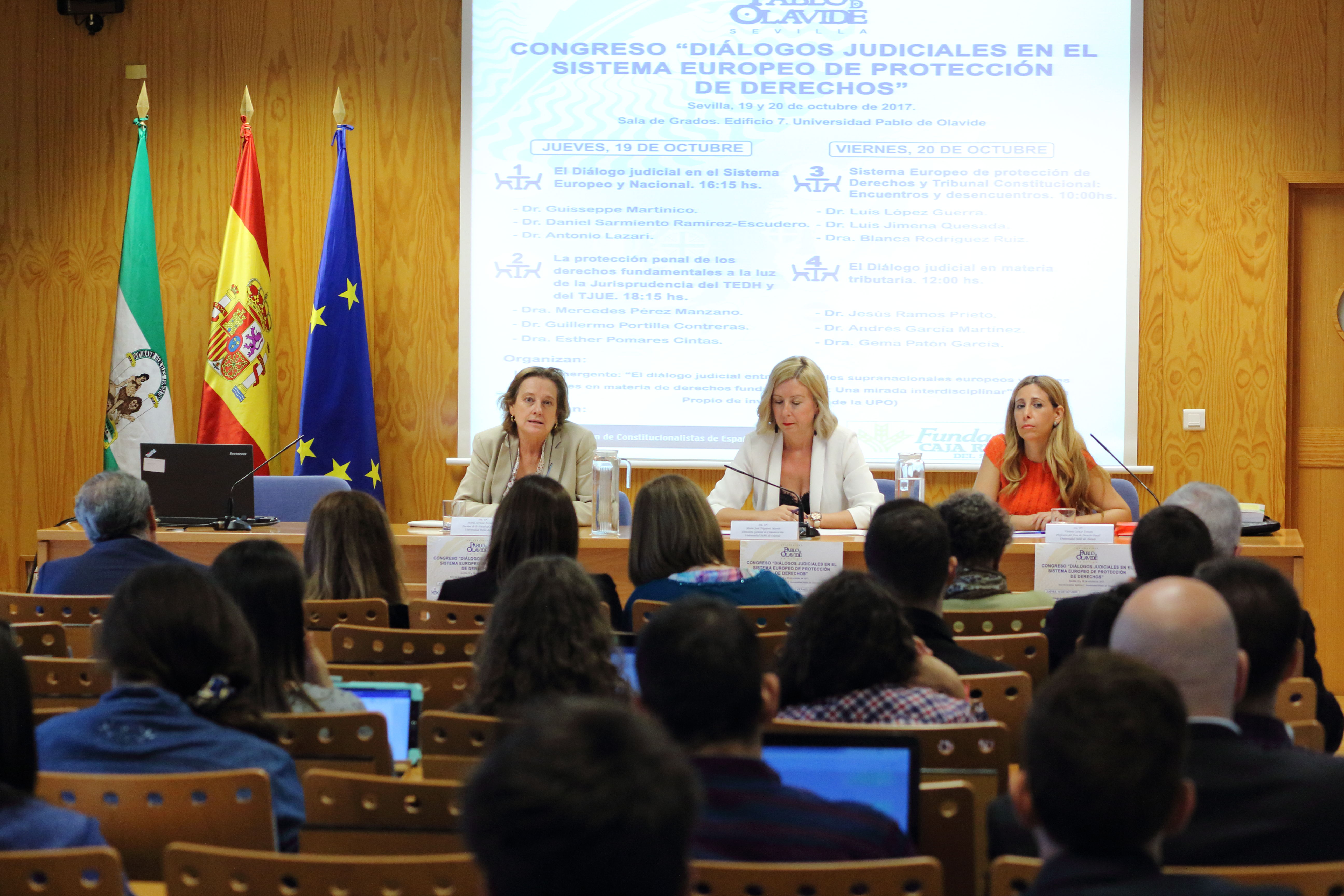 Organizado en el marco de la Línea de Investigación “El diálogo judicial entre tribunales supranacionales europeos y jueces nacionales en materia de derechos fundamentales: Una mirada interdisciplinar” del IV Plan Propio de la Universidad Pablo de Olavide, en este congreso participan ponentes expertos de entidades como la Universidad Complutense de Madrid, Universidad Autónoma de Madrid, Universidad de Jaén, Universidad Carlos III, Universidad de Valencia, Universidad de Sevilla, Universidad de Castilla-La Mancha y la Scuola Superiore Sant´Anna de Pisa (Italia) además de la propia UPO. Entre ellos, participan Luis Jimena Quesada, catedrático de Derecho Constitucional de la Universidad de Valencia y ex presidente del Comité Europeo de Derechos Sociales; y Luis López Guerra, catedrático de Derecho Constitucional de la Universidad Carlos III, magistrado del Tribunal Europeo de Derechos Humanos y ex magistrado del Tribunal Constitucional.
