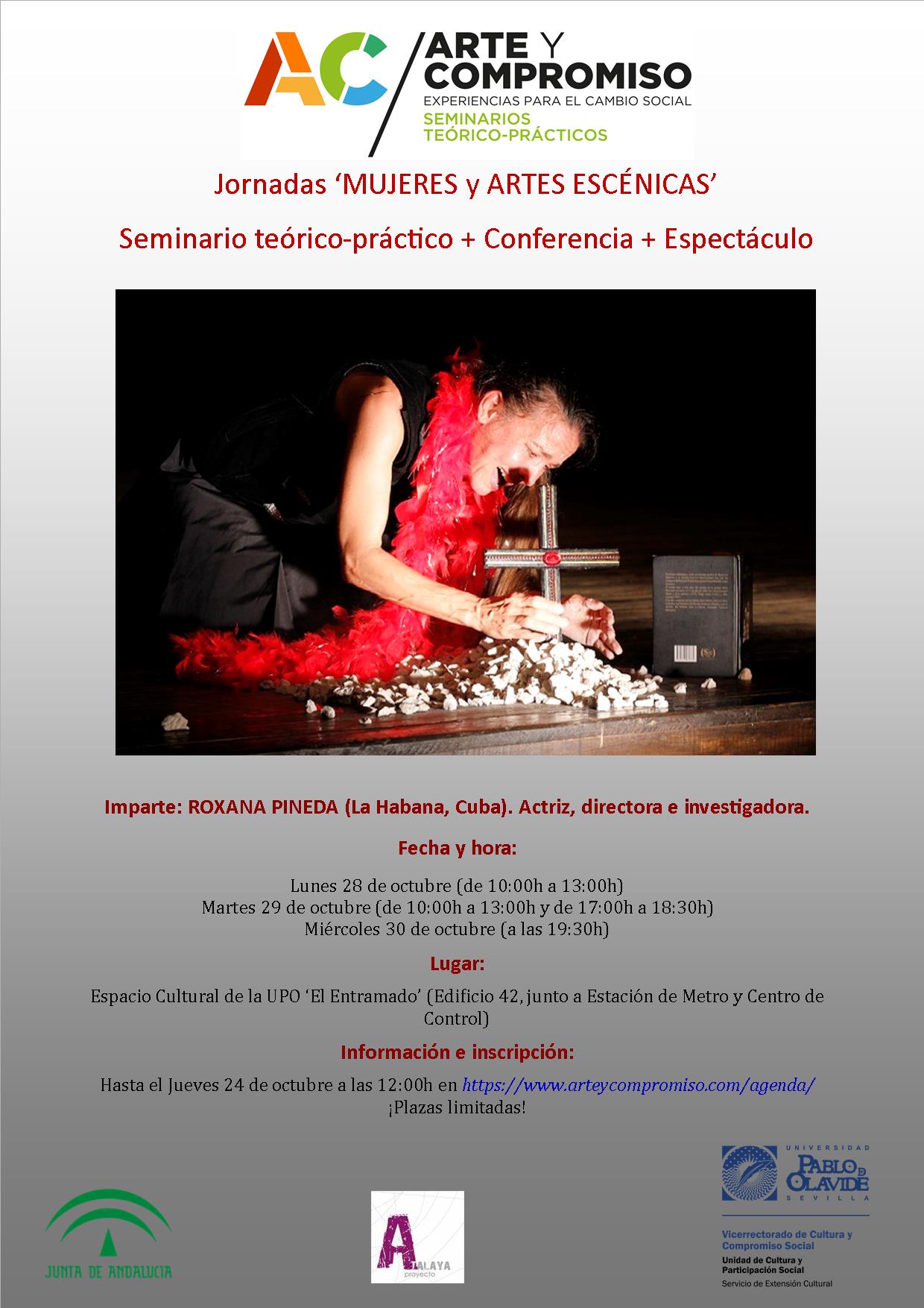 Tras el Encuentro ‘Mil formas de Mirar y Hacer’ celebrado el pasado mes de septiembre, continúan las actividades del proyecto con la presencia en el campus de la artista Roxana Pineda, actriz, directora e investigadora en arte dramático además de docente del Instituto Superior de Arte de La Habana, que actualmente dirige su propio proyecto teatral, Teatro La Rosa, del que es directora general y artística. Precisamente, su obra ‘Hojas de papel volando’ cierra el próximo miércoles estas jornadas que compuestas por el seminario teórico práctico ‘El cuerpo en acción’ que ha dado comienzo hoy y la conferencia ‘Pensar en femenino’, que tendrá lugar mañana martes a las 17 horas en El Entramado, Espacio Cultural de la UPO.