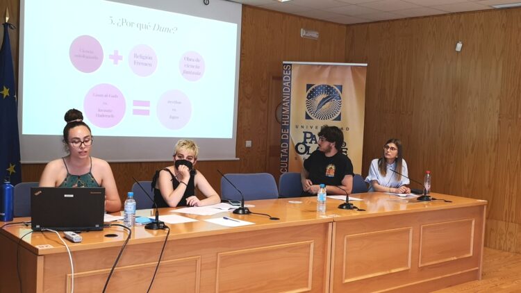 Rosario Moreno, decana de la Facultad de Humanidades, ha inaugurado esta mañana un encuentro en el que estudiantes de último curso de grado o doble grado de la Facultad de Humanidades han presentado los resultados científicos de sus TFG realizados sobre la antigüedad grecolatina y su pervivencia. Tras la presentación de las principales conclusiones de los trabajos, Esperanza Macarena Ródenas, directora del equipo editorial de la revista Itálica, ha impartido una charla con el título ‘Cómo convertir tu TFG en un artículo’. La Facultad de Humanidades, que colabora en las jornadas, trata así de impulsar la vocación investigadora de las jóvenes sobre materias relacionadas con el mundo antiguo a lo largo de los estudios, y especialmente cuando dan sus últimos pasos antes de graduarse.