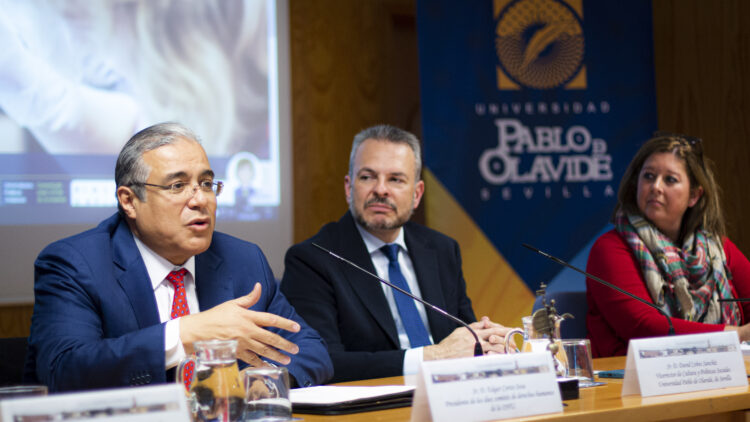 Edgar Corzo Sosa ha impartido este lunes en la Universidad Pablo de Olavide la conferencia ‘Derechos humanos. Situación actual y perspectivas de futuro: una visión desde la ONU’, en el marco de las actividades de la Cátedra Iberoamericana de Educación en Derechos Humanos. El presidente del Comité para la Protección de los Derechos de todos los Trabajadores Migratorios y sus Familiares (CMW) de Naciones Unidas, fue presentado por el rector Francisco Oliva junto a David Cobos, vicerrector de Cultura y Políticas Sociales de la UPO.