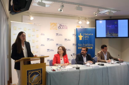 Estos dos eventos de carácter internacional han sido presentados esta mañana en la Universidad Pablo de Olavide, en un acto que ha contado con la participación del presidente en funciones del Consejo Social, Iván Pestaña; el director del Instituto Andaluz de la Juventud (IAJ), Pedro Antonio Ramírez; la vicerrectora de Estudiantes, Pilar Moreno; el presidente de la Asociación European Youth Parliament España, Jordi Bravo, y la vocal de comunicación de la asociación Club de Debate de la UPO, Eunate Agreda.