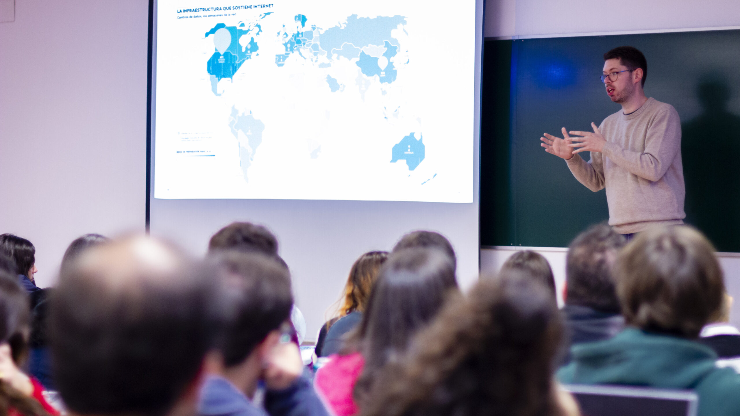 Los directores de EOM han mantenido un encuentro con estudiantes de Relaciones Internacionales y han recordado sus inicios, ya que ambos crearon la revista digital tras terminar estos estudios en dos universidades públicas de Madrid, la Complutense y la Rey Juan Carlos. «Reivindicamos la cartografía, una tradición que en España no se cultiva mucho pero que puede ayudar a entender la realidad mucho más que un artículo».
