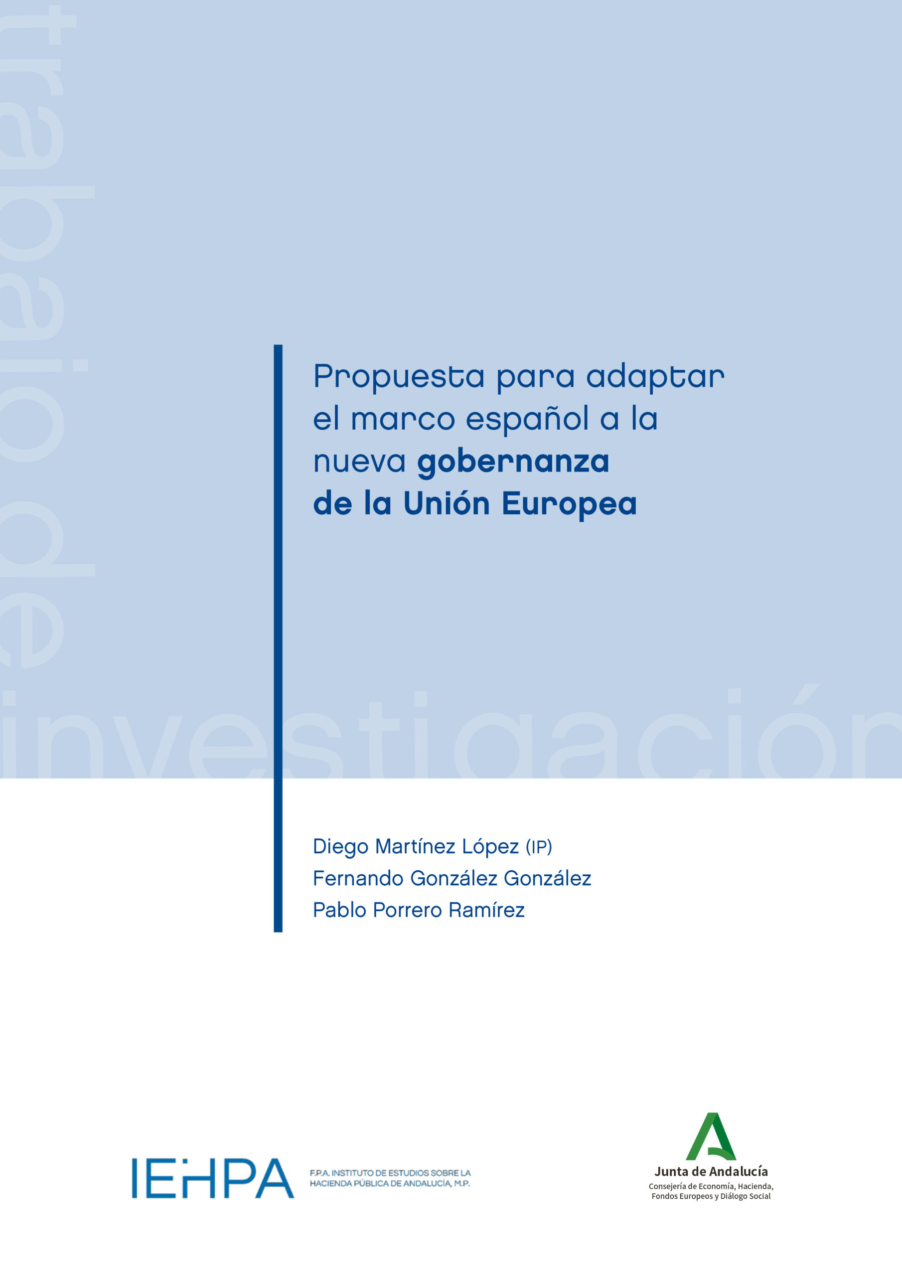 Martínez López, D. (coord.), González González, F., & Porrero Ramírez, P. (2025). Propuesta para adaptar el marco español a la nueva gobernanza de la Unión Europea. Fundación Pública Andaluza Instituto de Estudios sobre la Hacienda Pública de Andalucía (IEHPA). https://www.iehpa.es/assets/files/repositorios_digitales/35-1768377721_es-inf.pdf