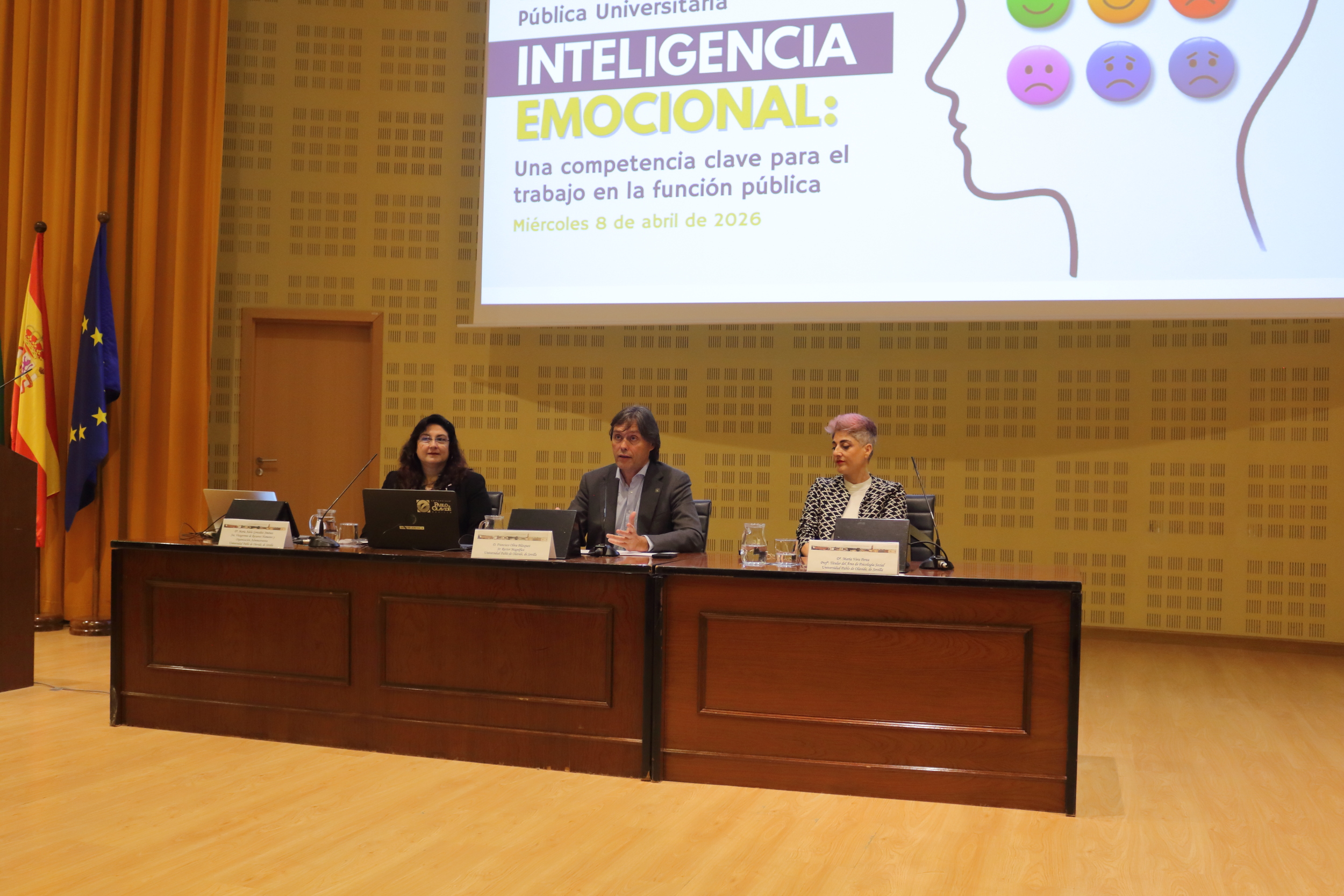 La Universidad Pablo de Olavide ha celebrado esta mañana la IV edición del Seminario sobre Gestión Pública Universitaria bajo el título ‘Inteligencia emocional: una competencia clave para el trabajo en la función pública’, consolidando este encuentro como un referente anual en el desarrollo de competencias claves para la administración universitaria.