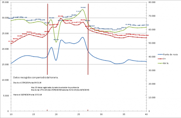 El avance de la tecnología medioambiental, y en especial de los equipos de registros “in situ”, ha permitido un análisis más directo de las correlaciones entre las formas de alteración y sus causas. Por ello, y con el fin de evaluar la influencia de los parámetros ambientales del entorno y de las condiciones microclimáticas en la Virgen del Rosario, se han realizado tres periodos de medida: la salida procesional, el registro climático en la capilla de junio a noviembre, y un segundo registro en su capilla de abril a septiembre.