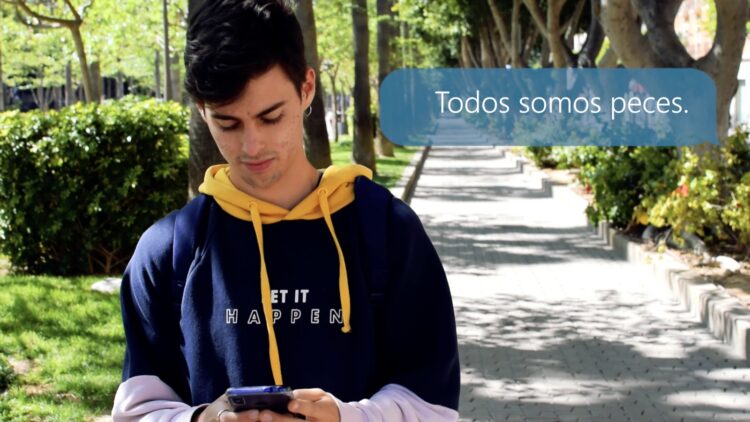‘Todos somos peces’ aborda la importancia de un uso saludable, responsable e inclusivo de las redes sociales donde las compara con las redes de un barco que capturan e impiden ver lo que nos rodean y distorsionan la visión de uno mismo y del mundo.