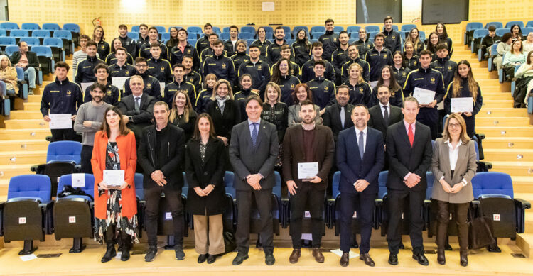 Para terminar con los premios, la universidad aprovechó la ocasión para otorgar de manos del rector, Francisco Oliva, los premios a los mejores deportistas en campeonatos universitarios, tanto a nivel autonómico como nacional, que fueron concedidos a Jesús Muñoz, medalla de plata en el CAU de campo a través; Aroa Silva, oro en 400m y 800m libre, plata en 200m mariposa y bronce en 400m y 800m libre individual, así como récord universitario en las pruebas de 800m y 400m libres del CAU de natación; José Luis Miranda, plata en 50m braza; Vicente Amigo, bronce en 200m y 400m libre; y Paula Polo y Raúl Cañero, que junto a Aroa Silva y Vicente Amigo, se hicieron con el bronce en 4×50 mariposa mixto por equipos, también en el CAU de natación.