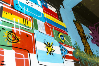 La obra mural diseñada por Rafa López para la entrada principal del campus de la Universidad Pablo de Olavide ocupa una superficie de 500 metros cuadrados y ha sido realizada sobre los muros y pilares que sustentan el paso elevado del Metro sobre la principal vía de entrada a la Universidad, junto a la estación ‘Pablo de Olavide’, en la rotonda que da acceso al campus. El mural ha sido financiado por el Ayuntamiento de Dos Hermanas.