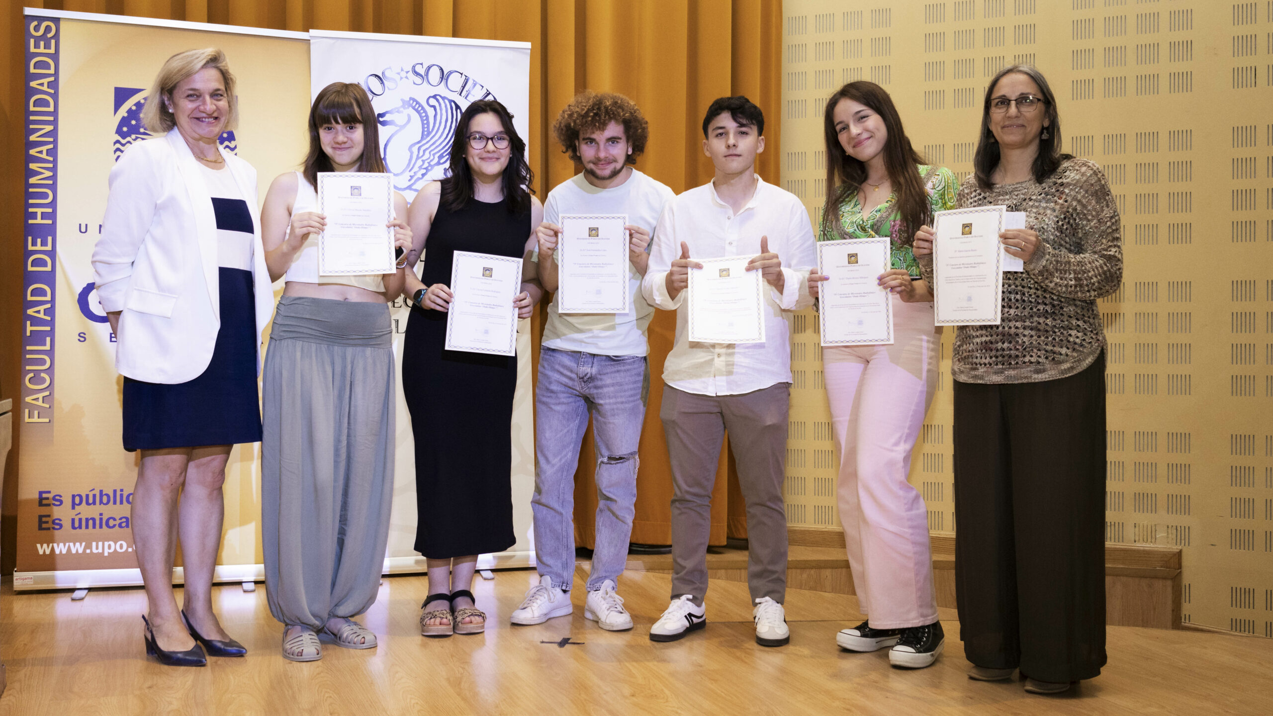 El acto de entrega de diplomas ha contado con la presencia de la directora general de Estudiantes de la Universidad Pablo de Olavide, Pilar Moreno; y del presidente de la sección de Sevilla y Huelva de la Sociedad Española de Estudios Clásicos, Javier Almodóvar, que ha hecho entrega a Pablo Respaldo, estudiante del IES Miguel Servet, de los diplomas que lo acreditan como ganador de los certámenes Parnaso –prueba nacional sobre lengua y cultura de la antigua Grecia– y Ciceronianum, sobre textos latinos de Cicerón.