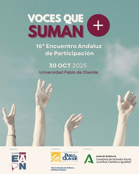La Universidad Pablo de Olavide ha acogido esta mañana el 16º Encuentro Andaluz de Participación bajo el lema ‘Voces que suman’, unas jornadas que han contado con representantes de servicios sociales de la Junta de Andalucía y del Ayuntamiento de Sevilla, invitados por EAPN Andalucía, Red Andaluza de Lucha Contra la Pobreza y la Exclusión Social, para debatir sobre la importancia de la participación en el diseño de las políticas públicas que tratan de reducir los índices de pobreza y como herramienta clave para la transformación social.