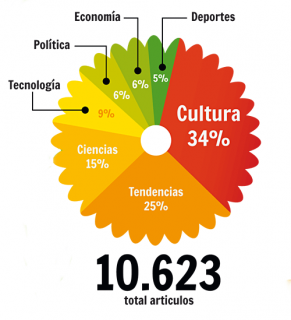 Según los datos de Beevoz, de esos 10.623 artículos escritos en la plataforma un 34% corresponde a contenidos sobre música, cine, teatro, fotografía o teatro. Contenidos, todos ellos, ubicados dentro de la sección de “Cultura”.