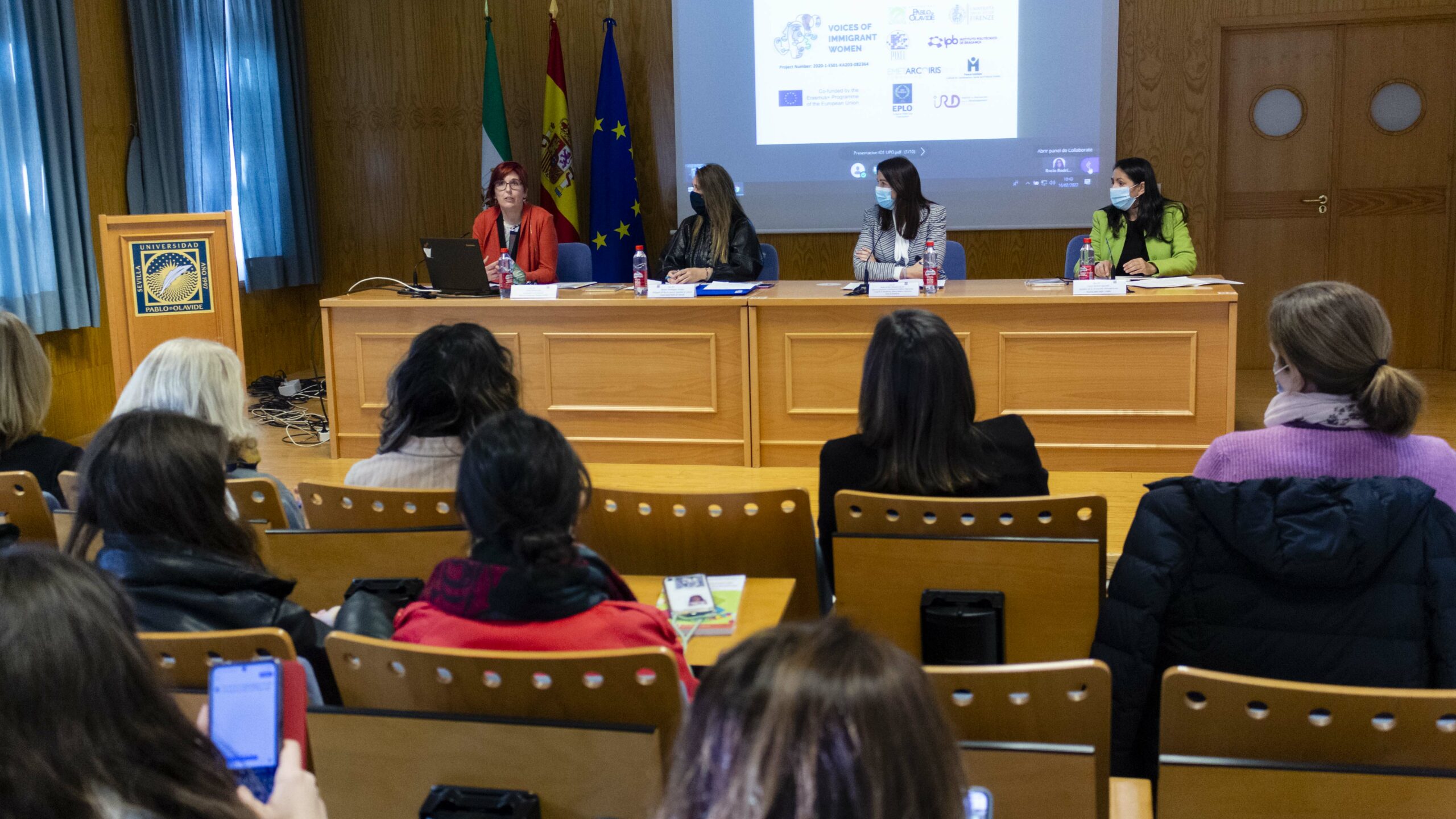 El proyecto Erasmus+ Voices of Inmigrant Women, liderado por la Universidad Pablo de Olavide junto a entidades de Italia, Francia, Portugal, Grecia y Eslovenia, cuenta ya con su primer resultado tangible de los tres contemplados en su cronograma. El mapa de estudios de casos e historias de éxito de integración de mujeres migrantes en estos seis países ha sido presentado esta mañana por Teresa Terrón, directora e investigadora principal del proyecto. Han participado también en la presentación, Mónica Domínguez, delegada del Rector para la Igualdad de Género de la UPO; María del Mar Ahumada, directora general de Coordinación de Políticas Migratorias de la Junta de Andalucía; y Noily Herrera, protagonista de una de las historias de éxito y miembro de la Asociación Huelva para todos y todas.