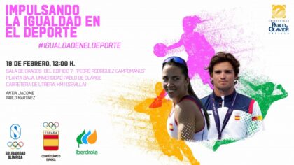 La mesa redonda ‘Impulsando la Igualdad en el Deporte’ se ha celebrado esta mañana en el campus UPO con el objetivo de fomentar la igualdad de género en el deporte. La jornada, en el marco de un programa que está desarrollando el Comité Olímpico Español e Iberdrola en las universidades españolas, incluyó la proyección del documental ‘Empoderamiento de mujeres en el deporte’.