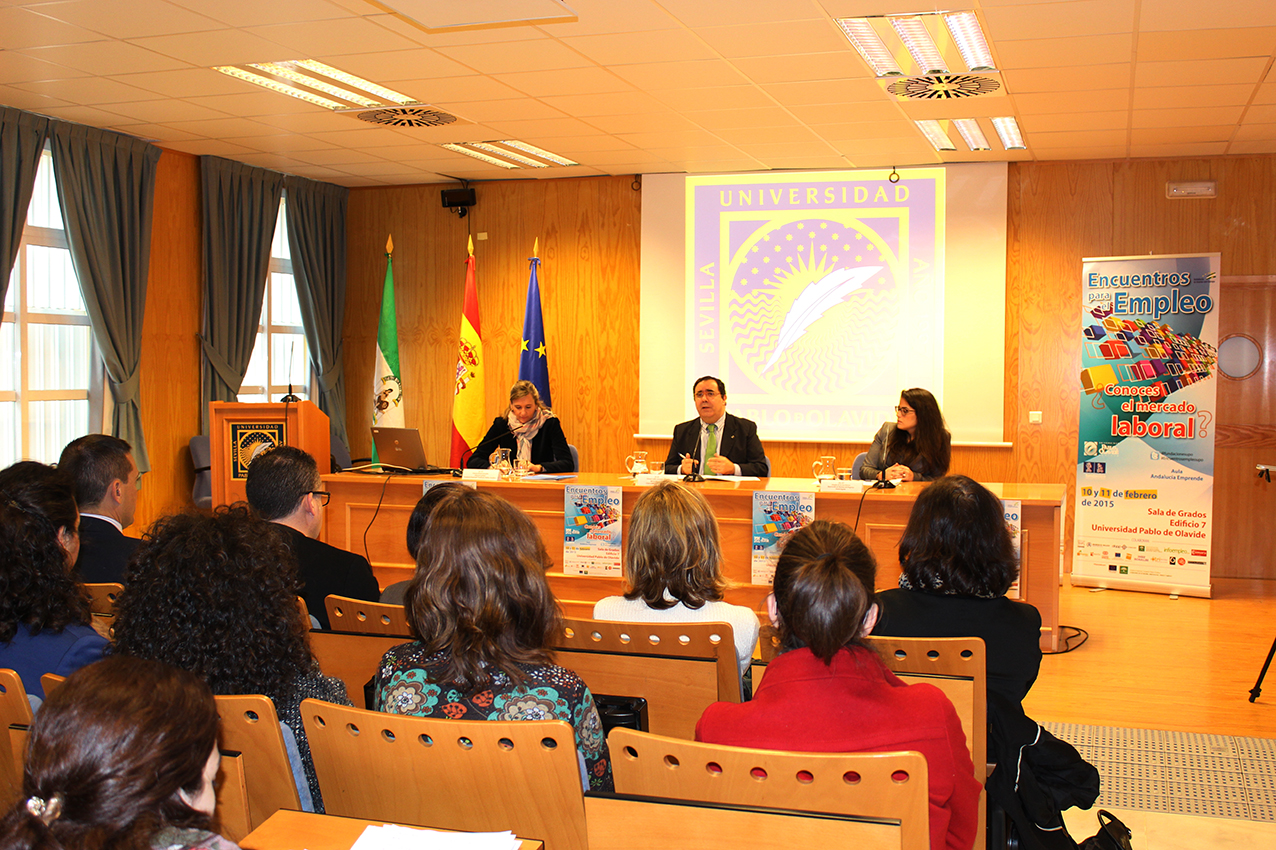 Ayer comenzó en la Universidad Pablo de Olavide la III edición de Encuentros para el Empleo, unas jornadas que, bajo el título “¿Conoces el mercado laboral?”, se celebrarán hasta hoy miércoles 11 de febrero. El objetivo principal de las mismas es acortar la distancia entre la empresa y la universidad, acercando a los universitarios la realidad del mundo laboral actual.