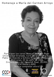 Mañana miércoles, 22 de abril, a las 20 horas en el Hospital Real, sede del rectorado de la Universidad de Granada, el coro de la Universidad Pablo de Olavide, junto con el coro Manuel de Falla de la Universidad de Granada y la Schola Gregoriana Hispana, participará en el concierto homenaje a Mª Carmen Arroyo, directora del coro de la Universidad de Granada. La entrada es libre hasta completar aforo.
