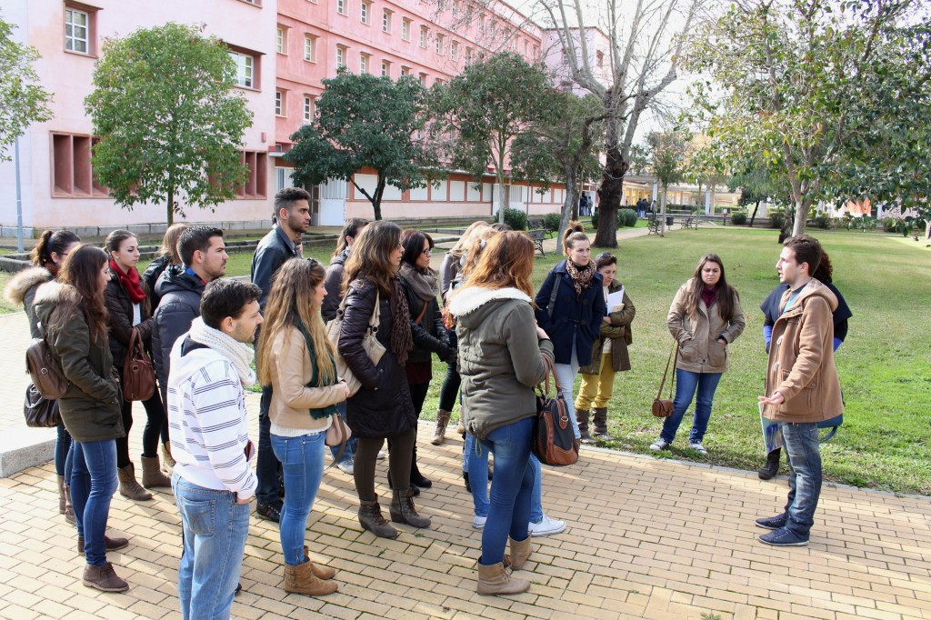 Recorrido por el campus de la UPO, acompañados por estudiantes de la propia universidad