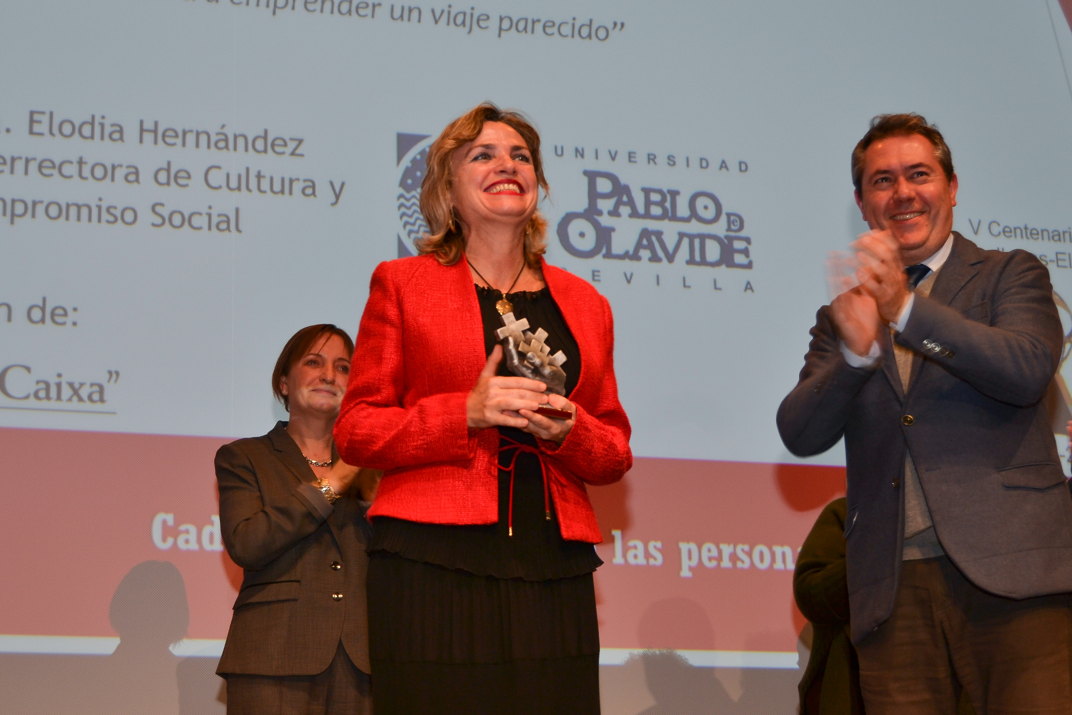 La vicerrectora de Cultura y Compromiso Social de la UPO Elodia Hernández León recogió ayer el premio en una gala que estuvo presidida por el alcalde de Sevilla Juan Espadas, y en la que también se reconoció la labor de la Orden Hospitalaria de San Juan de Dios, el Comité Español de Representantes de Personas con Discapacidad, y el decano del Colegio de Abogados de Sevilla José Joaquín Gallardo.