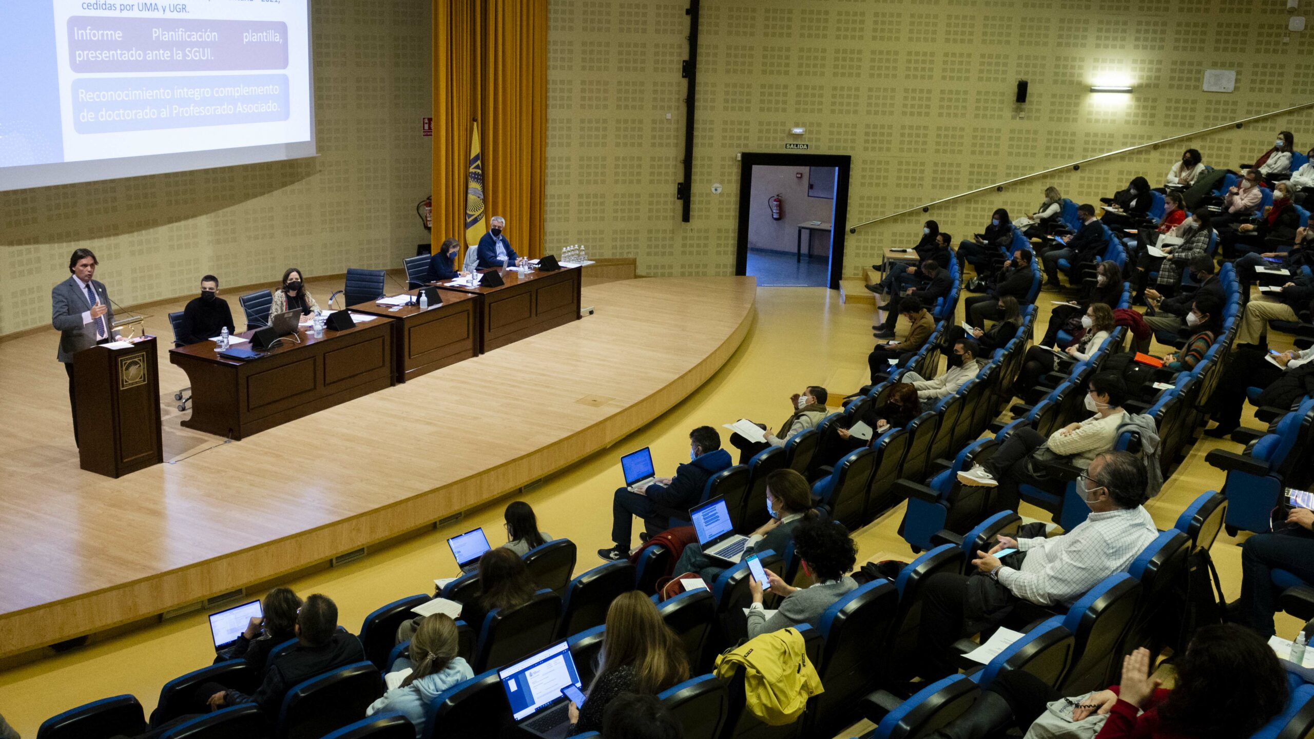 El Claustro Universitario de la Universidad Pablo de Olavide ha aprobado hoy jueves el Informe de Gestión del año 2021 del rector Francisco Oliva, un instrumento de rendición de resultados ante la comunidad universitaria sobre el funcionamiento de la Universidad y la actividad anual del equipo de gobierno. Es la primera vez que Francisco Oliva defiende ante el Claustro el Informe de Gestión, tras cumplirse en noviembre un año de las elecciones que lo proclamaron rector. La comunidad universitaria representada en el Claustro ha respaldado de manera unánime (77 votos a favor, 0 en contra y 0 abstenciones) la gestión realizada por Francisco Oliva y su equipo. Se trata, con diferencia, del Claustro con más votos a favor de la historia de la Universidad y la primera vez que se aprueba el Informe de Gestión sin ningún voto en contra y sin ninguna abstención.