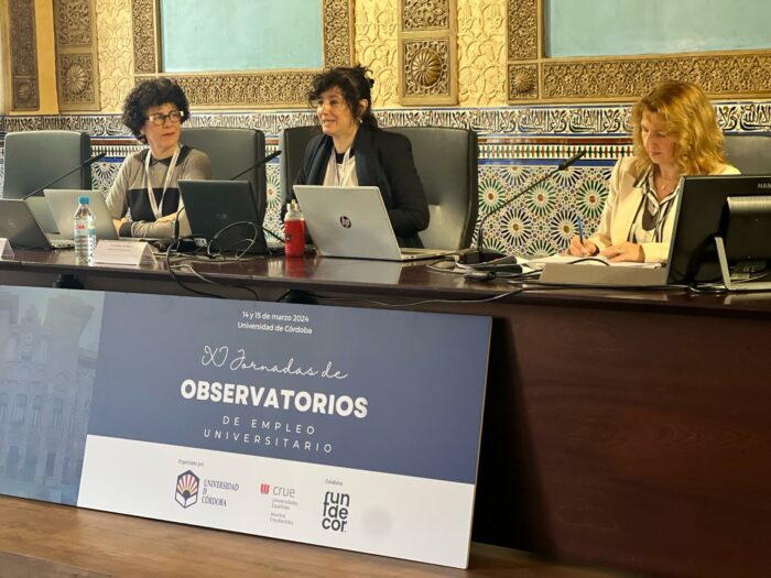 Las XI Jornadas de Observatorios de Empleo Universitario, organizadas por Crue Universidades Españolas y celebradas en la Universidad de Córdoba los días 14 y 15 de marzo, sirvieron como plataforma para el intercambio de conocimientos y experiencias en el ámbito de la empleabilidad. Amapola Povedano, directora general de Empleabilidad y Emprendimiento de la Pablo de Olavide, y Sandra Fachelli, directora académica del Observatorio de Empleo de la Universidad, presentaron una comunicación sobre buenas prácticas en la creación del Observatorio de Empleo y la adaptación cultural de la encuesta europea EUROGRADUATE en España.