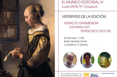 Hoy miércoles 22 de mayo, a las 17:30 horas en la sede Olavide en Sevilla-Centro (C/Laraña, 4) finalizará el ciclo El Mundo Editorial IV con un diálogo entre el profesor, traductor, editor y autor Francisco Socas y el periodista y editor Ignacio Garmendia, titulado ‘Vertientes de la edición’. Esta actividad está financiada por el Departamento de Filología y Traducción y[Read More…]