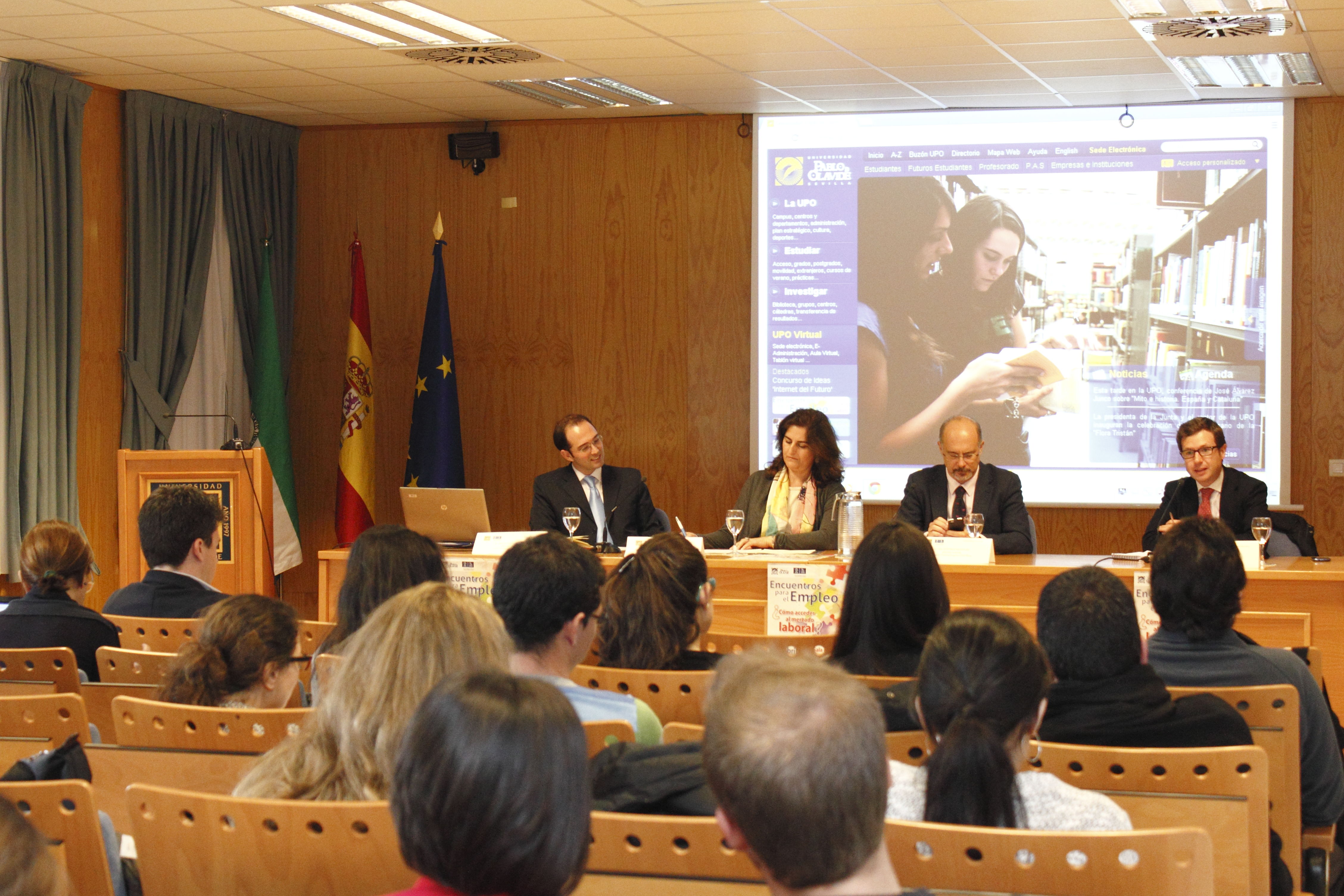 Hoy finaliza en la Universidad Pablo de Olavide la segunda edición de Encuentros para el Empleo, unas jornadas organizadas por la Fundación Universidad-Sociedad que han reunido durante tres días a veintidós importantes empresas y entidades de diferentes sectores empresariales. Estos encuentros concluirán dedicando el último día al emprendimiento y la creación de empresas y contarán con la participación de jóvenes emprendedores que explicarán sus experiencias empresariales y entidades de reconocido prestigio que presentarán sus programas y ayudas para los emprendedores.