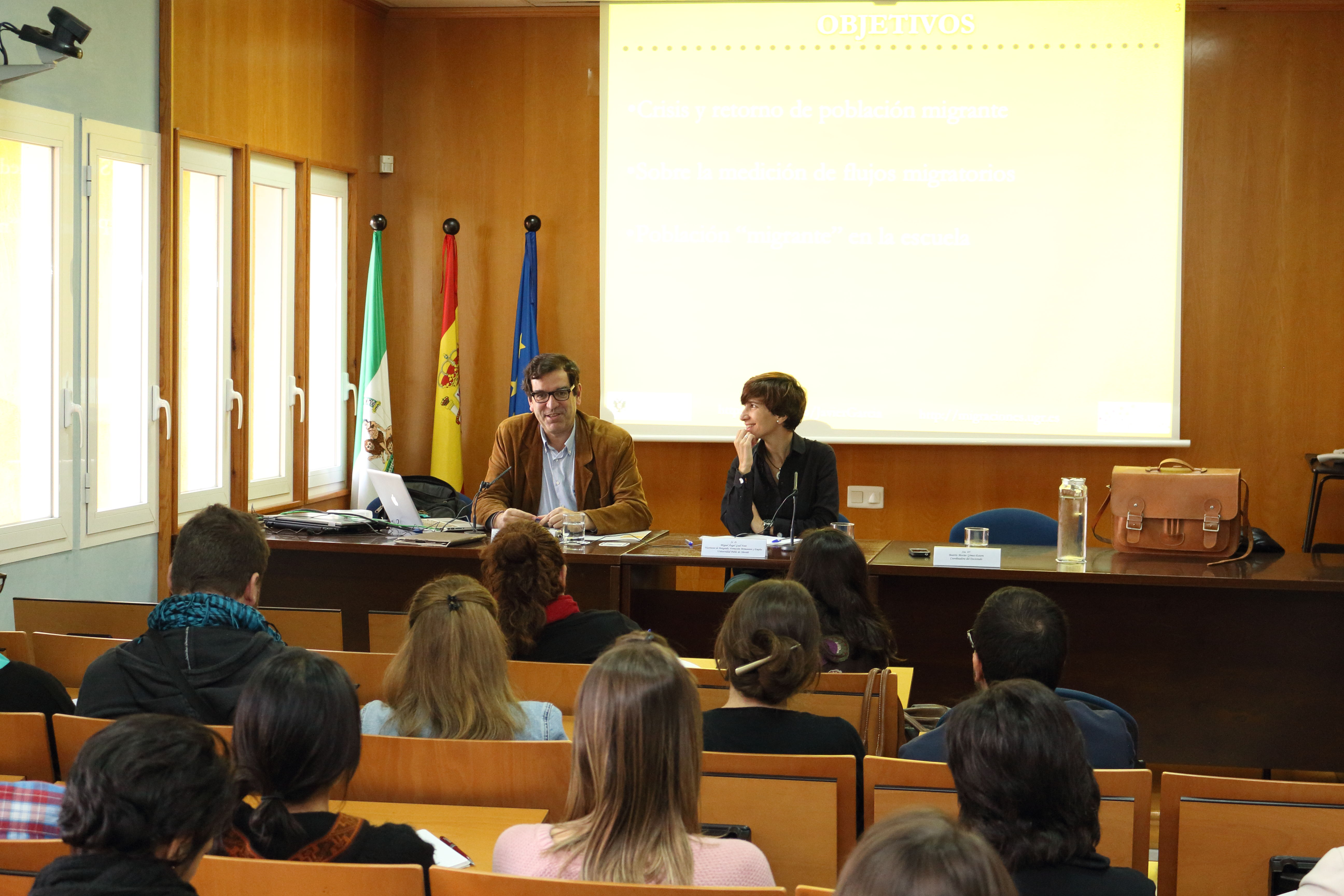 En la sala de grados del edificio 6 de la Universidad Pablo de Olavide, el profesor Francisco Javier García Castaño, catedrático de la Universidad de Granada  y director del Instituto Andaluz de las Migraciones ha impartido la conferencia “Inmigración, crisis y escuela: ¿Se está vaciado el sistema  educativo de los llamados ‘inmigrantes’?” de apertura de curso del Doctorado Interuniversitario de Estudios Migratorios (Universidad de Granada, Universidad de Jaén, Universidad Pablo de Olavide), del que es coordinador.