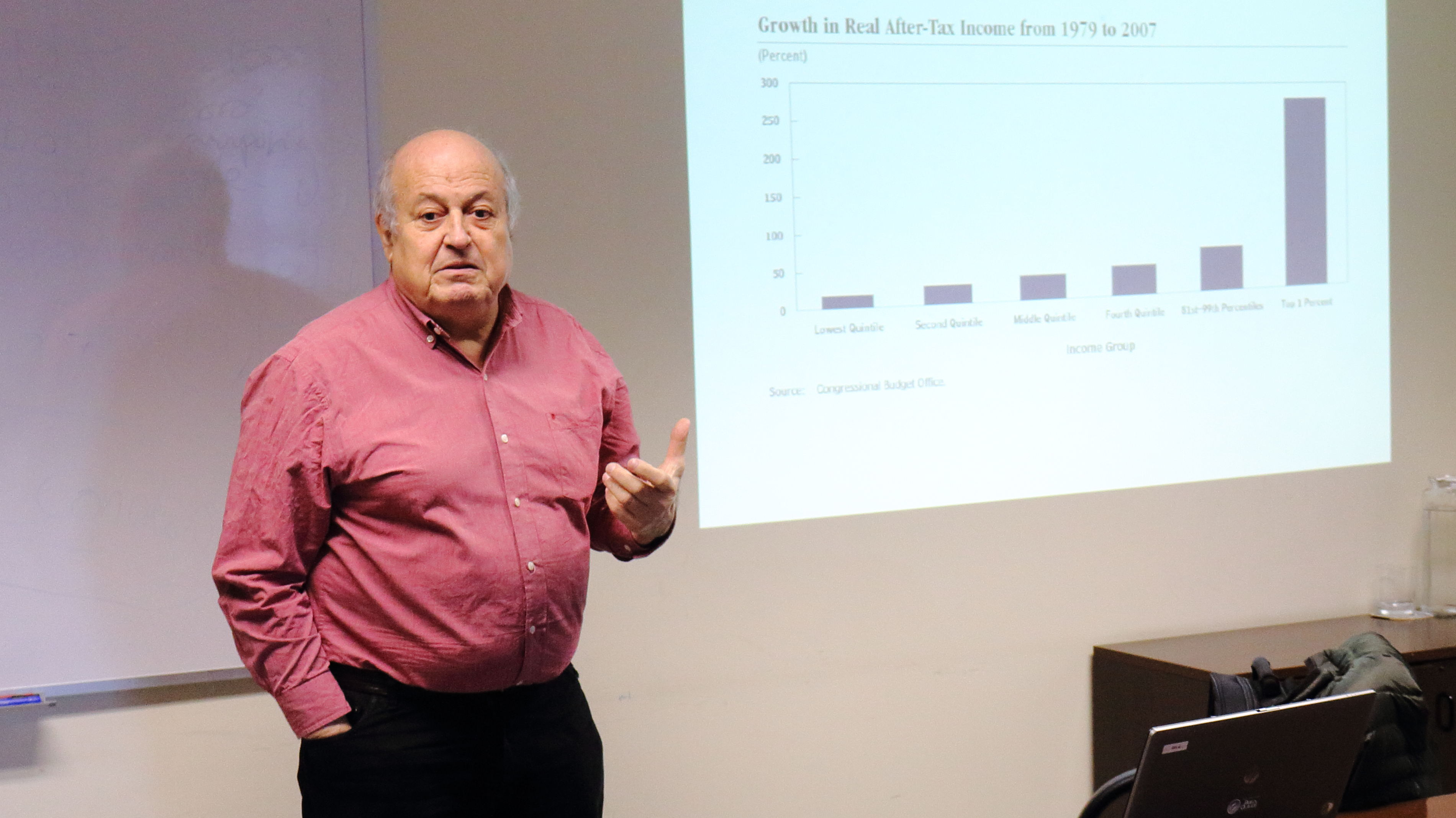 Joan Esteban, economista e investigador en el Instituto de Análisis Económico del CSIC, ha impartido hoy en la Universidad Pablo de Olavide el seminario “Globalization and Income Inequality”, organizado por el Área de Análisis Económico de la UPO. Por su temática, con este seminario se rinde homenaje al profesor Anthony Atkinson de la London School of Economics, recientemente fallecido.