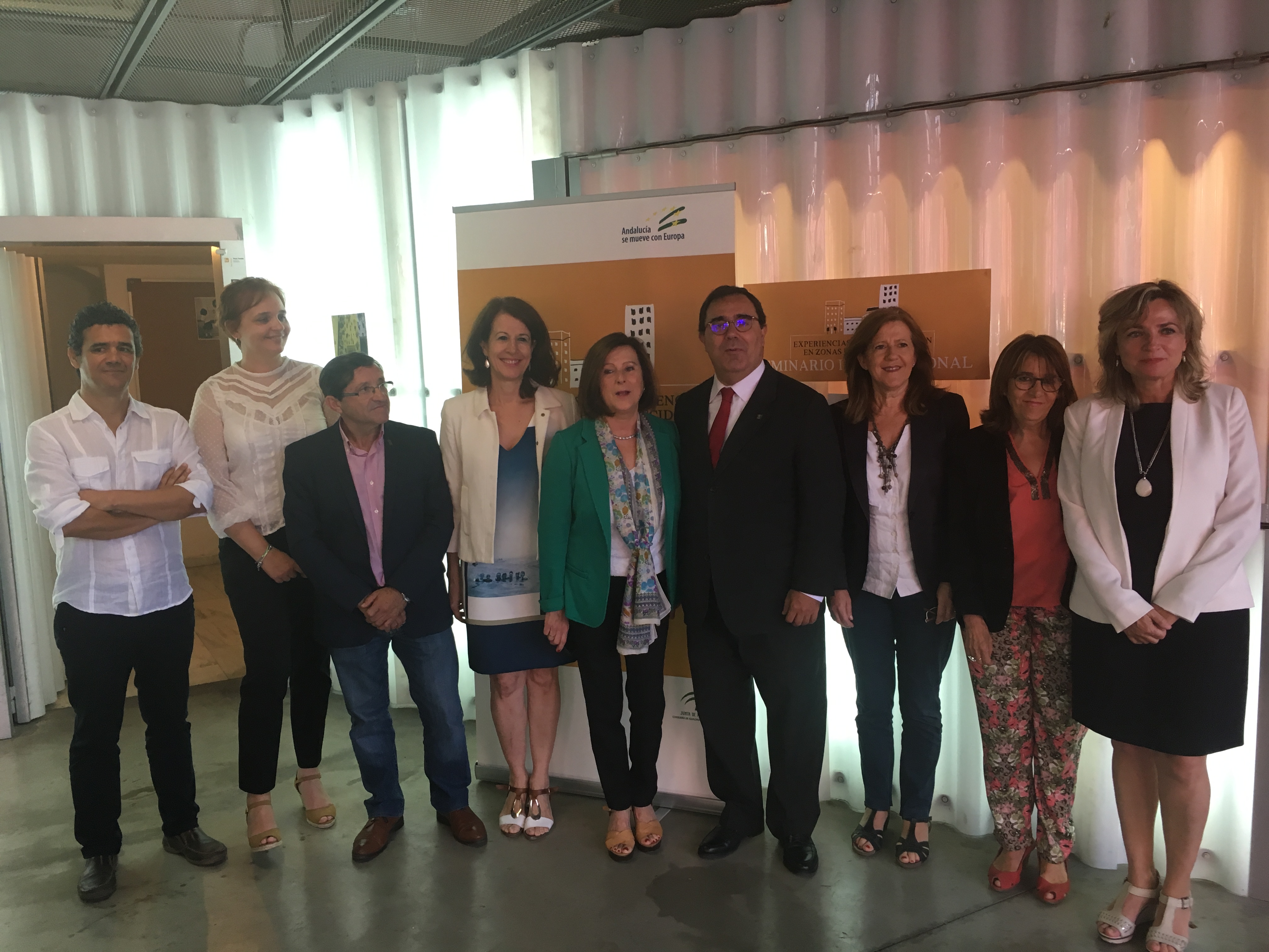 El rector de la Universidad Pablo de Olavide Vicente Guzmán Fluja y la consejera de Igualdad y Bienestar Social de la Junta de Andalucía María José Sánchez Rubio han presentado, en la Residencia Flora Tristán de la UPO, el Seminario Internacional sobre Políticas de Intervención en Zonas con Necesidades de Transformación Social. También han estado presentes en este acto el viceconsejero Manuel Martínez Domene, la Comisionada para el Polígono Sur María del Mar González Rodríguez, y la secretaria general de Servicios Sociales de la Junta de Andalucía Purificación Gálvez Daza.
