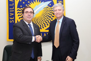 El rector de la Universidad Pablo de Olavide, Vicente Guzmán, y el delegado provincial de Sevilla de la Federación Andaluza de Ajedrez, Jesús Muñoz Alonso, han firmado esta mañana en el Rectorado de la UPO un convenio de cooperación educativa entre ambas instituciones a través de cual estudiantes de la Olavide podrán realizar prácticas en el Open Internacional de Ajedrez ‘Ciudad de Sevilla’ el próximo año.