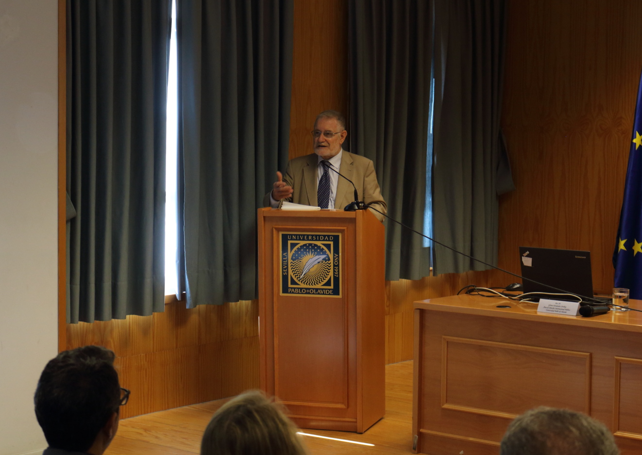 La Facultad de Derecho de la Universidad Pablo de Olavide inicia hoy lunes 8 de octubre un ciclo de conferencias sobre Derecho Internacional con la presencia en el campus del embajador Juan Antonio Yáñez-Barnuevo, quien ha intervenido a las 12 horas en la sala de grados del edificio 7, con la ponencia ‘Una vida consagrada al Derecho Internacional a través de la Diplomacia’.