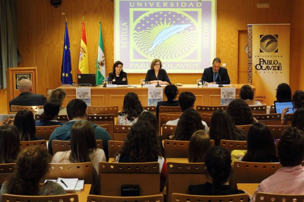 Hoy miércoles 10 de octubre, a las 9.30 horas en la sala de grados del edificio 7, comienza en la Universidad Pablo de Olavide el Congreso Internacional ‘Comunicación Interlingüística e Intercultural en Contextos de Asilo y Refugio’ (CIICAR). El encuentro ha sido inaugurado por Isabel Lucena, vicerrectora de Internacionalización; Rosario Moreno, decana de la Faculta de Humanidades; y Francisco Vigier, profesor del departamento de Filología y Traducción de la UPO y miembro del comité organizador.