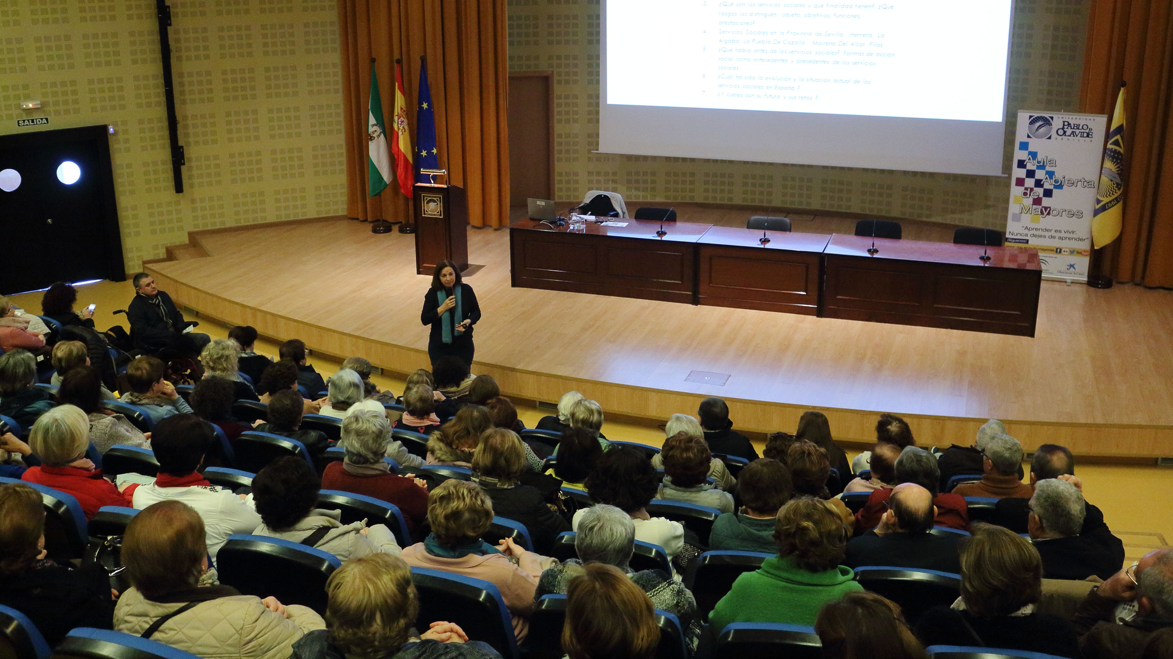 El alumnado del Aula Abierta de Mayores de la Universidad Pablo de Olavide asiste hoy martes 22 y mañana miércoles 23 de enero a cuatro seminarios académicos que se celebran en el campus de la UPO en el marco del VIII Programa de Envejecimiento Activo y Solidaridad Intergeneracional.