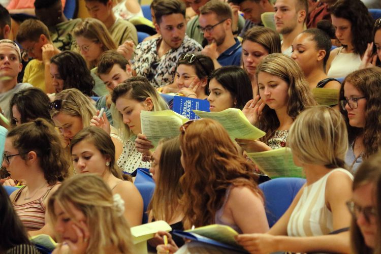 Estudiantes internacionales en una sesión de orientación celebrada esta semana en el Paraninfo