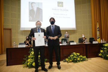 Por último, se ha hecho entrega de las Medallas al Mérito, distinción que simboliza el reconocimiento a personas físicas o jurídicas por haber prestado servicios relevantes a la Universidad y haber contribuido con su labor de manera notoria, al desarrollo de la investigación, la enseñanza universitaria, las ciencias, artes o letras o por su trabajo a favor de la protección ambiental, del respeto a los Derechos Humanos y de la paz.