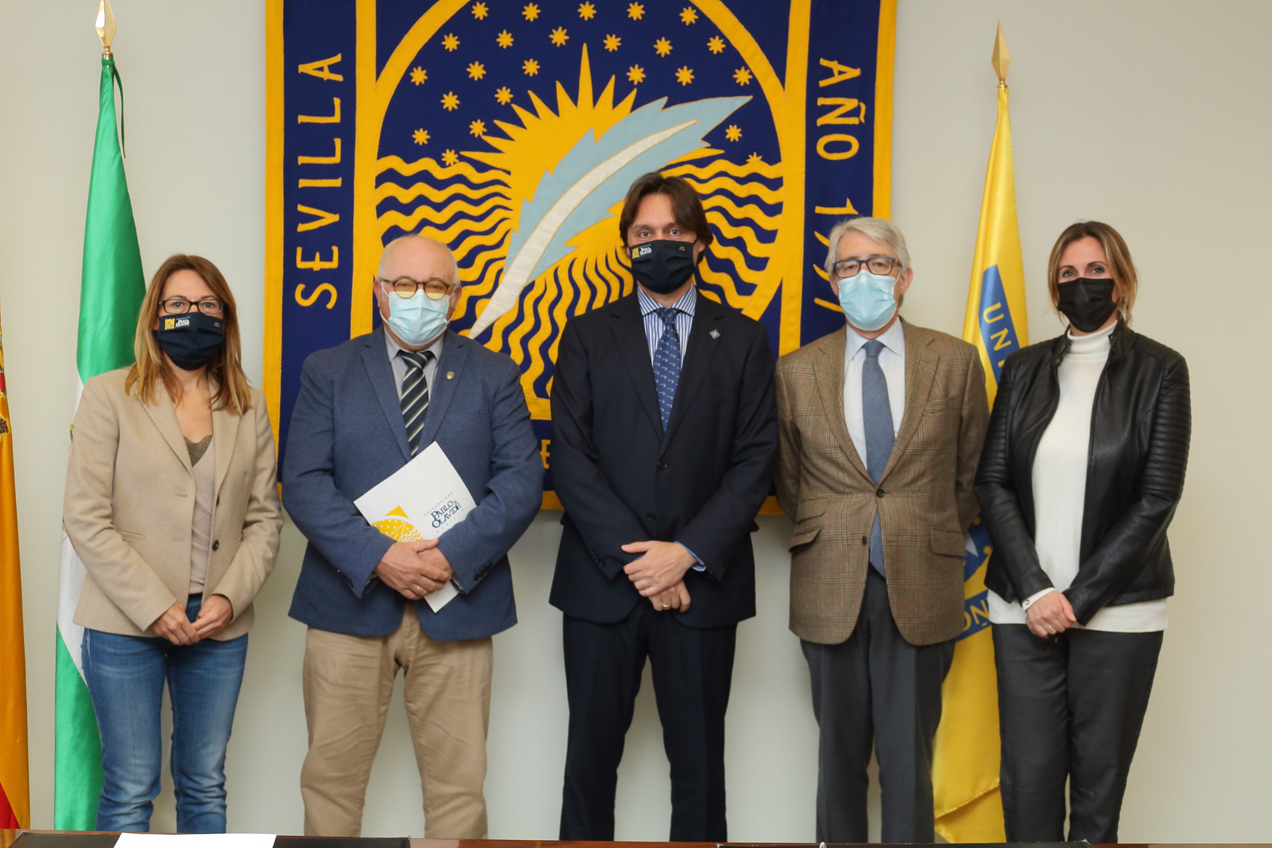 El rector y el presidente del Consejo Regulador han estado acompañados por Laura López de la Cruz, vicerrectora de Relaciones Institucionales y Fundaciones de la UPO; Alberto Donaire Ibáñez, miembro del Pleno del Consejo Regulador; y Rosario Costa Mateos, secretaria general de dicho Consejo.