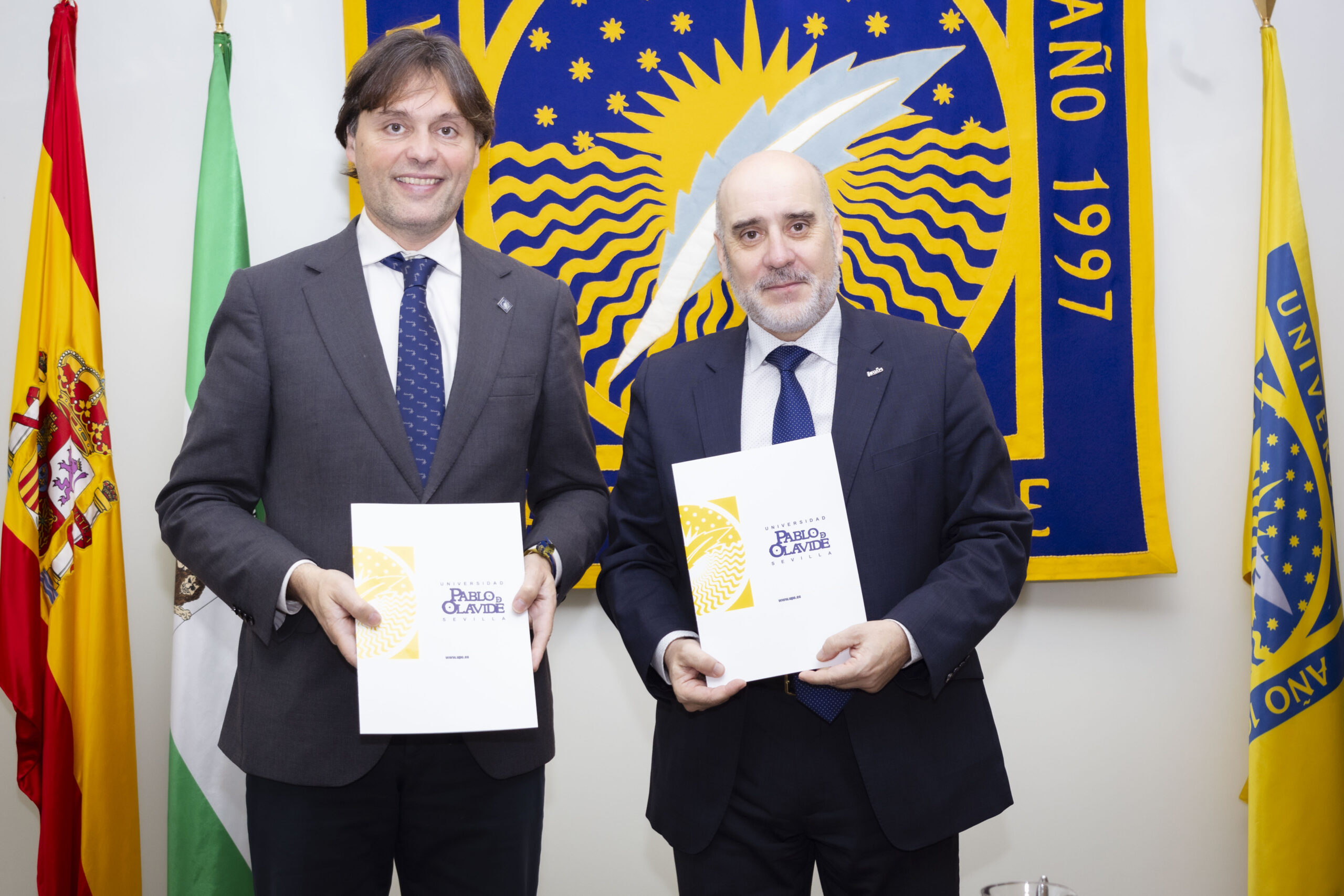 Este convenio se inscribe en el marco de la Cátedra EducAcción, un espacio de referencia en la Universidad Autónoma de Madrid dedicado a la medición del impacto ambiental, social y de gobernanza en el ámbito educativo que gestiona su Fundación (FUAM). El rector de la Universidad Pablo de Olavide, Francisco Oliva, y el director de la Cátedra, Santiago Atrio, han firmado un acuerdo que permitirá desarrollar estrategias académicas y científicas orientadas a redefinir el aprendizaje en un contexto global. Han estado también presentes en el acto de ratificación, Sonia Díez, presidenta del consejo científico de la Cátedra, y Laura Gómez, vicerrectora de Cultura y Políticas Sociales de la Olavide.