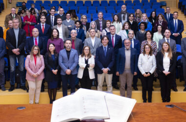 El Paraninfo de la Universidad Pablo de Olavide ha acogido esta mañana el acto público de tomas de posesión de profesorado y cargos de gestión de la Universidad. De este modo, presidida por el rector de la UPO y en presencia de miembros del equipo de gobierno, han tomado posesión nueve nuevos catedráticos y catedráticas y 22 profesores y profesoras titulares.