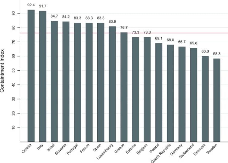 En primer lugar, utilizamos los indicadores gubernamentales de respuesta a la pandemia proporcionados por la Oxford COVID-19 Government Response Tracker. Nos centramos exclusivamente en aquellos indicadores orientados a restringir la movilidad y el contacto social. De este modo, construimos un índice que nos permitió clasificar a los 17 países en función de la dureza de las medidas.