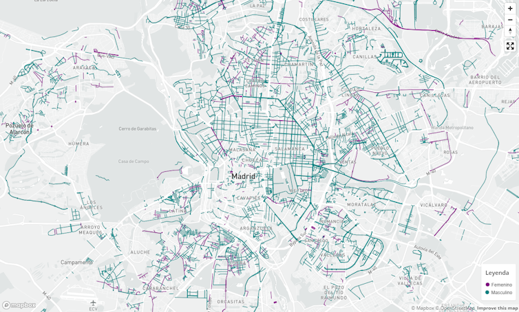 La página web Ciudades con Género, desarrollada junto al investigador Demetrio Carmona-Derqui, ofrece un tour dinámico donde se explica de manera no técnica el estudio. Asimismo, se acompaña de un gráfico interactivo para consultar la evolución de la proporción de calles de mujeres en cada municipio desde 2001 a 2022. Además, contiene un mapa donde visualizar el sesgo de género en la toponimia urbana (desde el nivel provincial hasta el detalle del callejero de cada municipio). Esperamos que esta web sea una herramienta útil para hacer un seguimiento a esta dimensión simbólica de la igualdad de género.