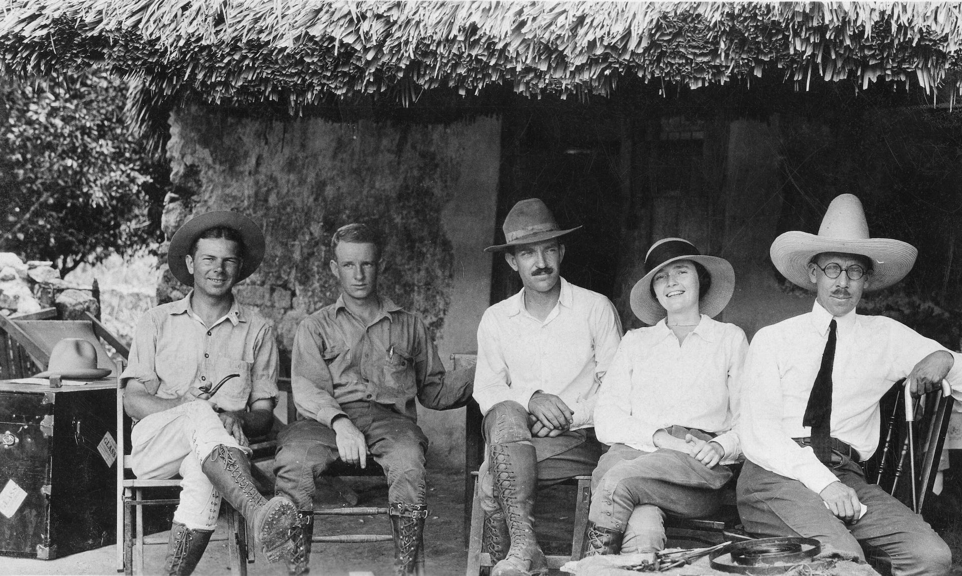 Primer equipo de la Institución Carnegie de Washington, Proyecto Chichén Itzá. De izquierda a derecha: J.O. Kilmartin, ingeniero; Monroe Amsden, arqueólogo asistente y pagador; E.H. Morris, arqueólogo a cargo de las excavaciones, Mrs. Morris, artista, y S.G. Morley, asociado de la Institución a cargo del Proyecto Chichen Itza. 21 de mayo de 1924. US Geological Survey/Wikimedia Commons