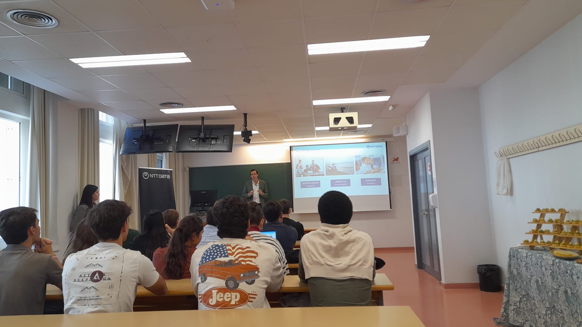 La Facultad de Ciencias Empresariales de la Universidad Pablo de Olavide ha celebrado hoy una actividad formativa en colaboración con la multinacional NTT DATA, dirigida al estudiantado del Grado en Análisis Económico. El encuentro, desarrollado en el campus, ha tenido como objetivo acercar al alumnado al ámbito de la analítica de negocio y mostrar las oportunidades profesionales en el sector tecnológico.