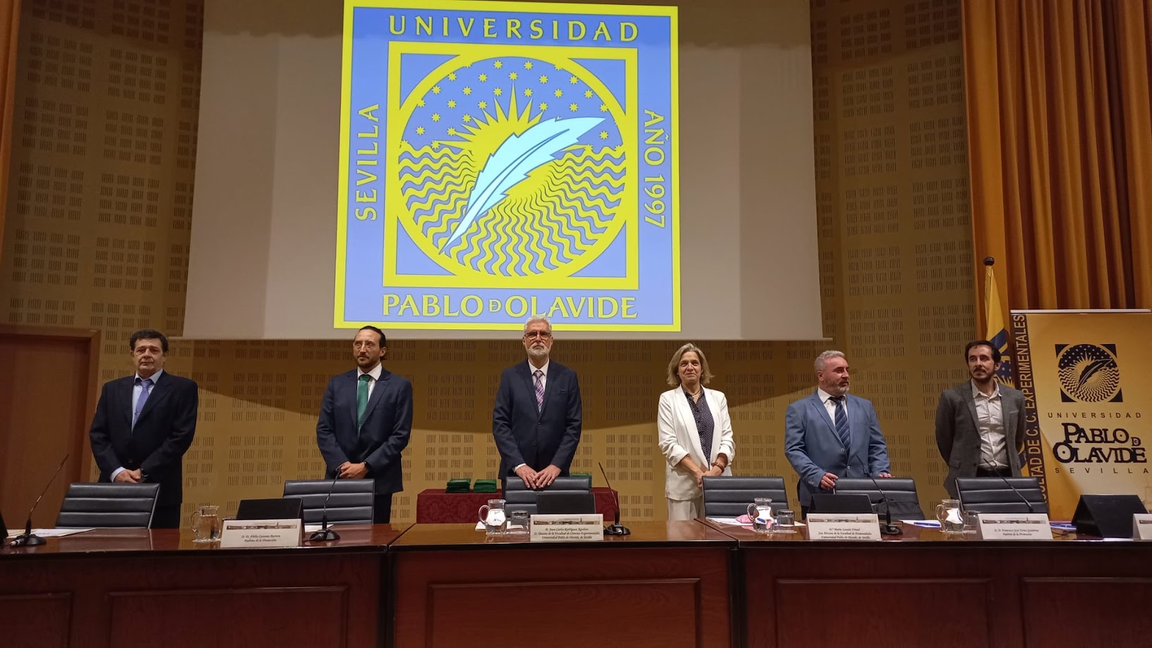 Y finalmente, el día 20 de junio tuvimos un acto doble con la graduación del alumnado de GCAM y la segunda promoción de XAYG; por ese motivo estuvo también presidiendo la mesa la Decana de la Facultad de Humanidades la Sra. Dª. María Losada Friend. El padrino de la promoción de GCAM fue D. Abilio Caetano, vicepresidente del Colegio de Ambientólogos de Andalucía (COAMBA); mientras que el del doble grado XAYG fue el Sr. D. Francisco José Torres Gutiérrez, Profesor del Área de Análisis Geográfico Regional de la UPO. Los profesores honoríficos fueron el Sr. D. Ildefonso Pérez Ot, Profesor del Área de Ingeniería Química y el Sr. D. David Gallego Puyol, Profesor del Área de Física de la Tierra, ambos de la UPO; de GCAM el primero y de XAYG el segundo.