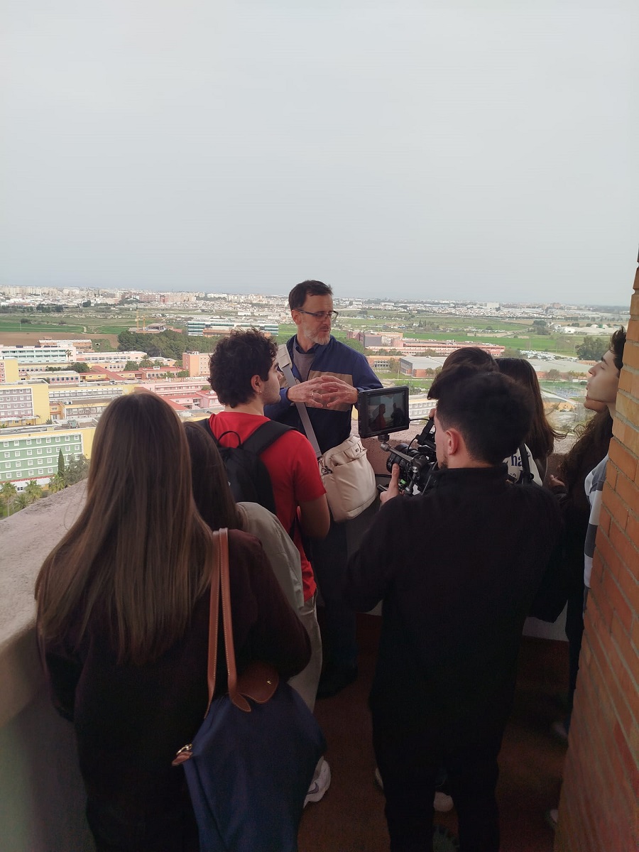 A lo largo de la jornada se realizaron tomas en distintos espacios emblemáticos: la Biblioteca, aulas tanto en interior como al aire libre, los laboratorios de Arqueología e Interpretación, así como escenas con alumnado internacional, el grupo de teatro Furor Bacchicus, el canal y la Torre. Cada rincón aportó su propia esencia para reflejar la vida universitaria en toda su diversidad.