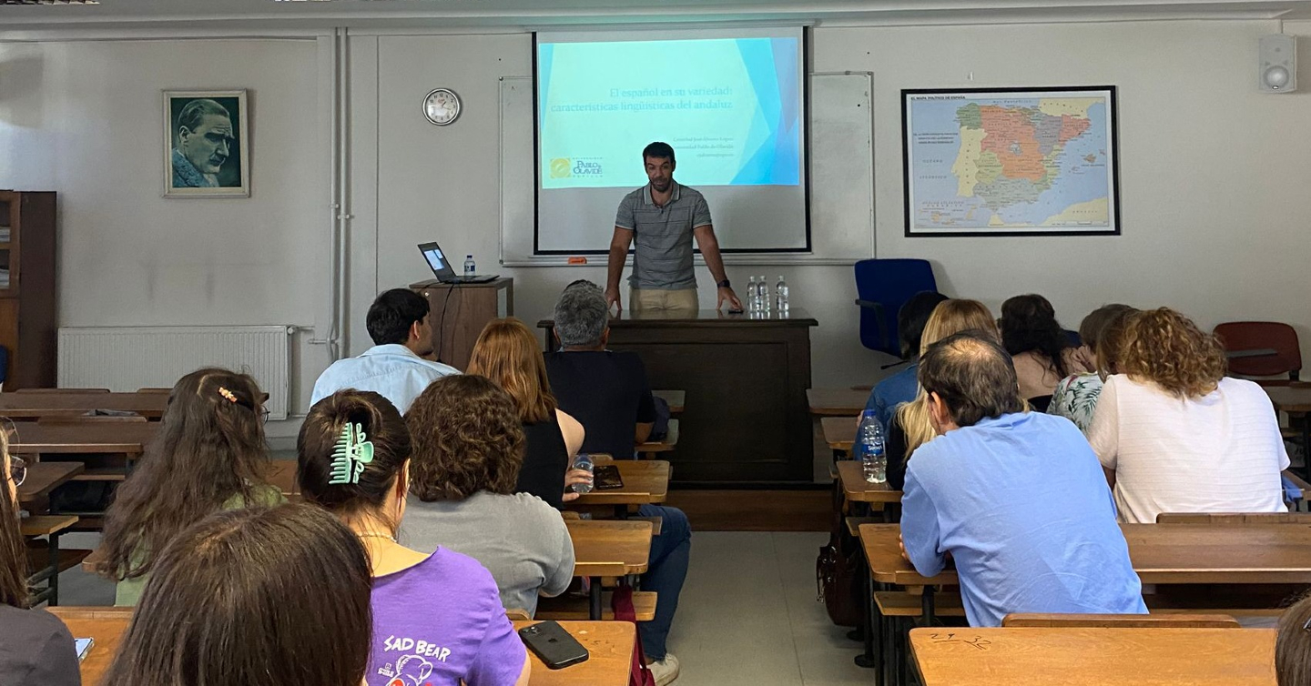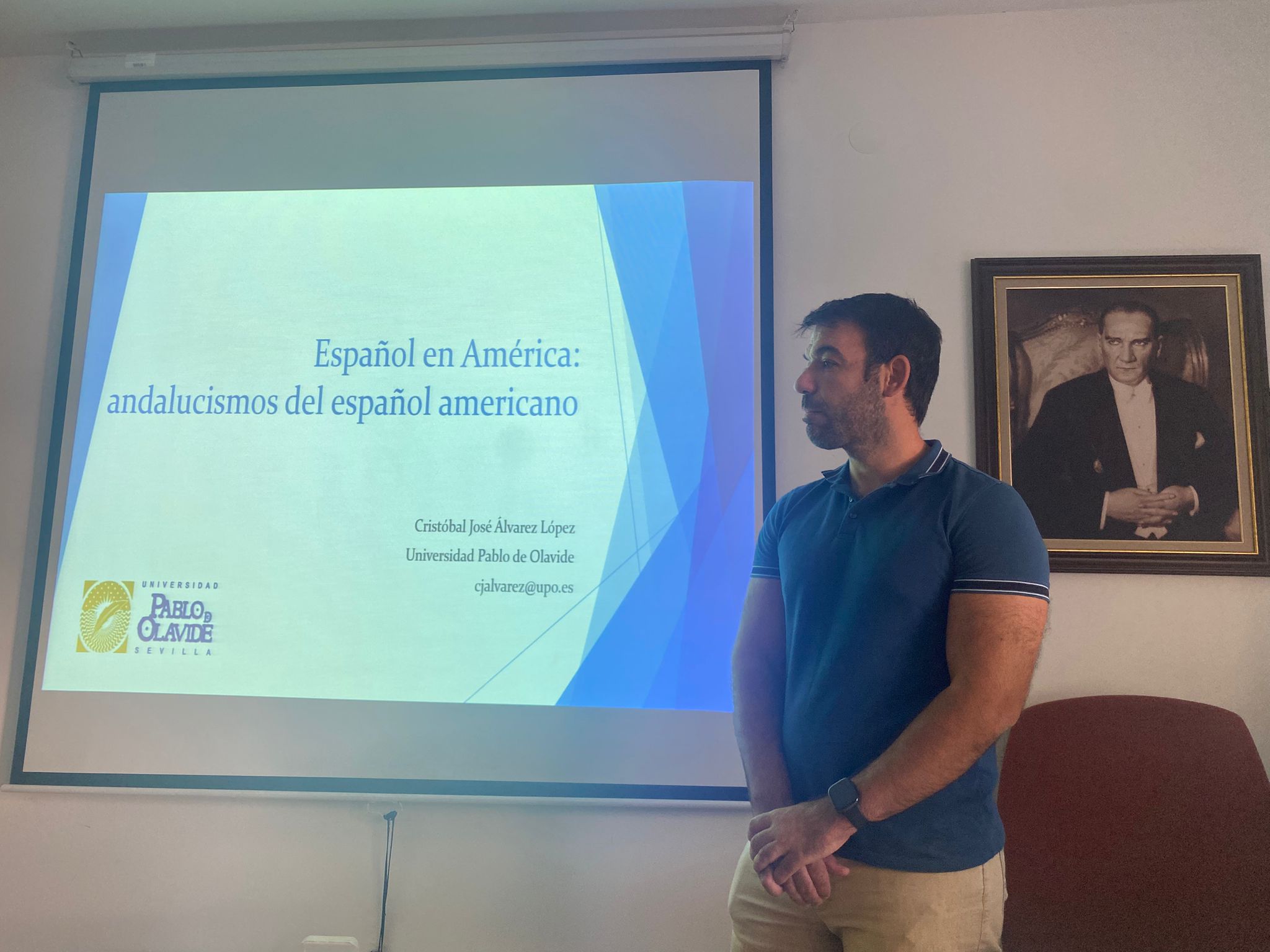 Nuestro compañero Cristóbal Álvarez, profesor del Área de Lengua Española y Vicedecano de Relaciones Externas y Comunicación de la Facultad de Humanidades, ha realizado una estancia docente en la Universidad de Ankara (Turquía) en el marco del programa Erasmus+. A lo largo de la semana, impartió varias clases tanto en la Facultad de Lenguas e Historia-Geografía como en LAMER (Centro de Estudios Latinoamericanos). Como se puede apreciar en las fotos adjuntas, su estancia en la Universidad de Ankara ha transcurrido en un ambiente muy cordial, compartiendo experiencias con el profesorado y el estudiantado que estudia español en dicha institución.