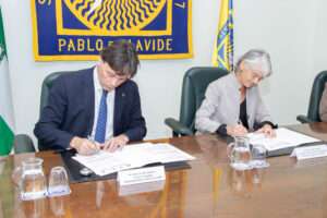 Mediante este convenio se fomentará la formación de los arquitectos y arquitectas a través de dos cursos que comenzarán en los próximos meses: ‘Intervención en el patrimonio arquitectónico: aproximación a la práctica profesional’ dirigida por Francisco Ollero Lobato, y ‘El uso de la Inteligencia Artificial en la arquitectura y la construcción’, dirigida por Luis Merino Cabañas, ambos catedráticos de la Universidad Pablo de Olavide.