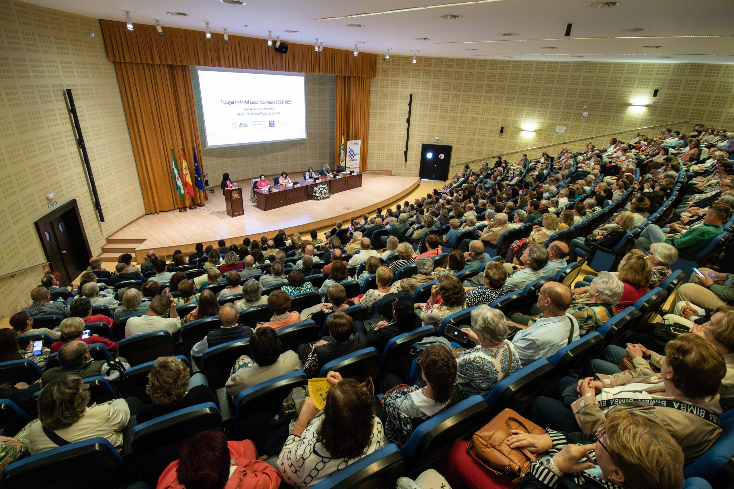 La Universidad Pablo de Olavide ha dado la bienvenida a sus alumnos y alumnas matriculados este curso académico 2024/2025 en el Aula Abierta de Mayores, un programa formativo que este año inicia su vigésima segunda edición y que fomenta la formación científica, cultural y social de las personas mayores, a la vez que mejora su calidad de vida y fomenta la participación como dinamizadores y dinamizadoras sociales.