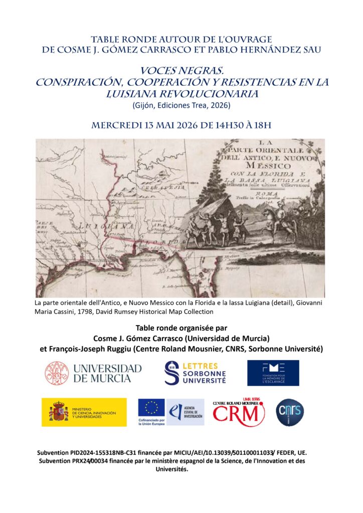 El grupo PAIDI HUM 680 les invita a la mesa redonda Voces negras. Conspiración, cooperación y resistencias en la Luisiana revolucionaria que se celebrará el próximo 13 de marzo de 2026 sobre la obra de Cosme J. Gómez Carrasco y nuestro miembro Pablo Hernández Sau. Más información aquí.