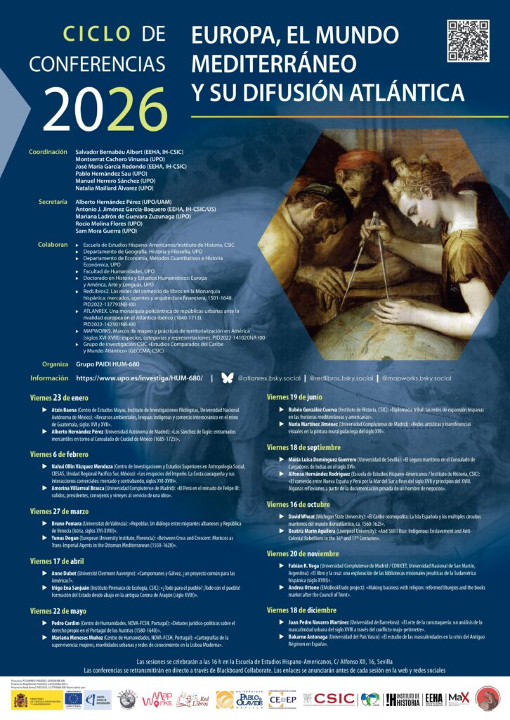 - Alberto Hernández Pérez (Universidad Autónoma de Madrid): «Los Sánchez de Tagle: entramados mercantiles en torno al Consulado de Ciudad de México (1685-1725)».