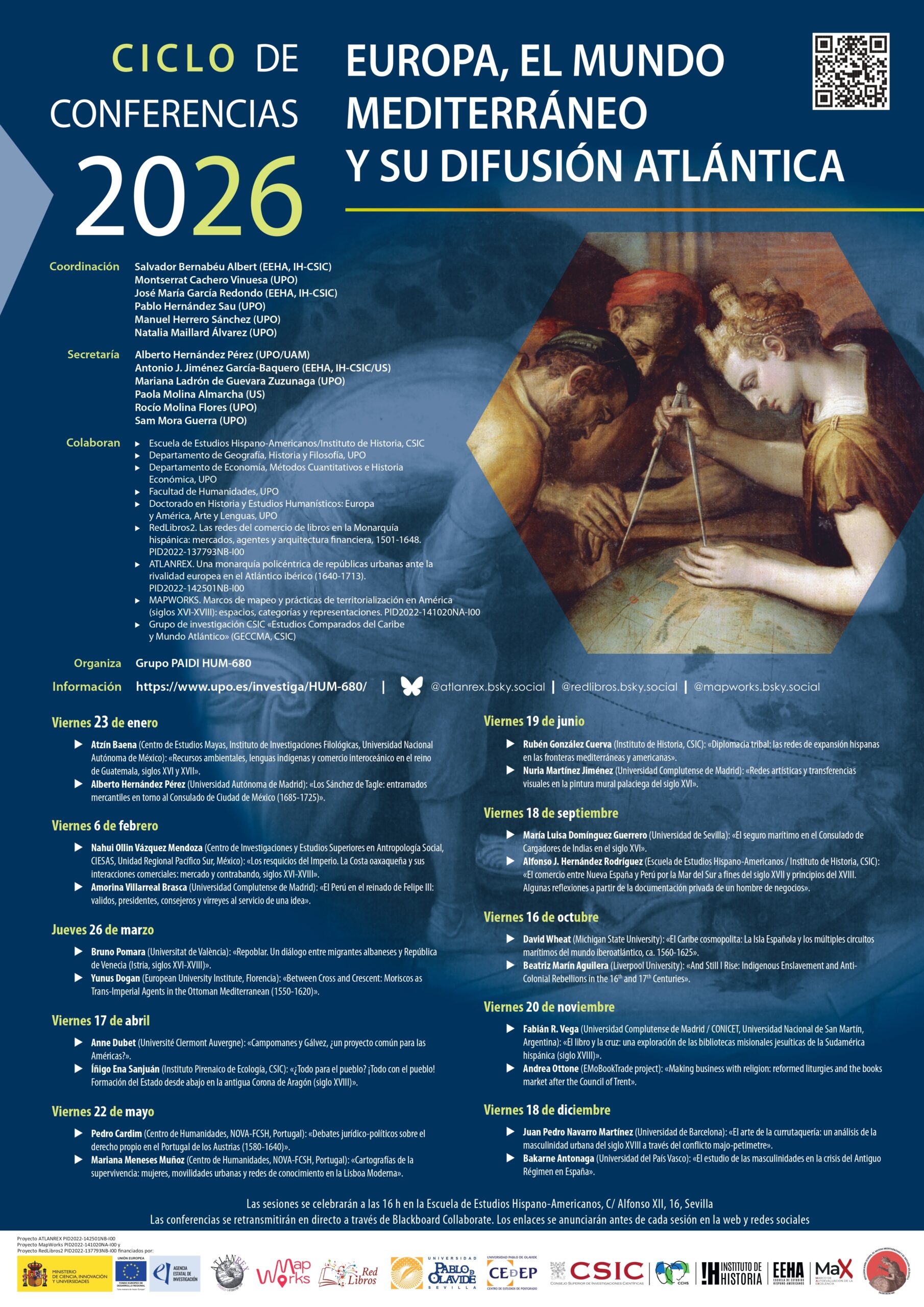 - Nahui Ollin Vázquez Mendoza (Centro de Investigaciones y Estudios Superiores en Antropología Social, CIESAS, Unidad Regional Pacífico Sur, México): «Los resquicios del Imperio. La Costa oaxaqueña y sus interacciones comerciales: mercado y contrabando, siglos XVI-XVIII».